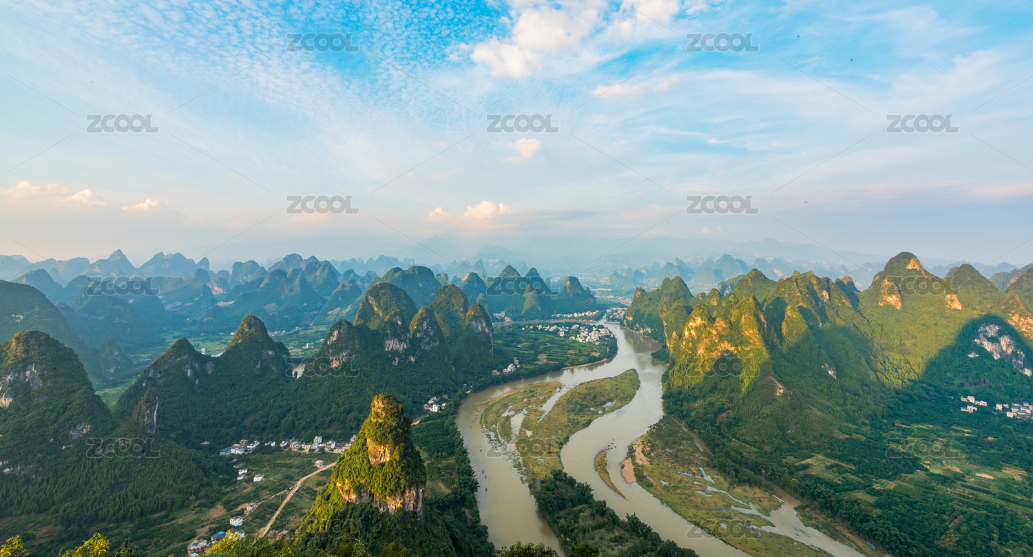 桂林阳朔兴坪漓江午后全景风光