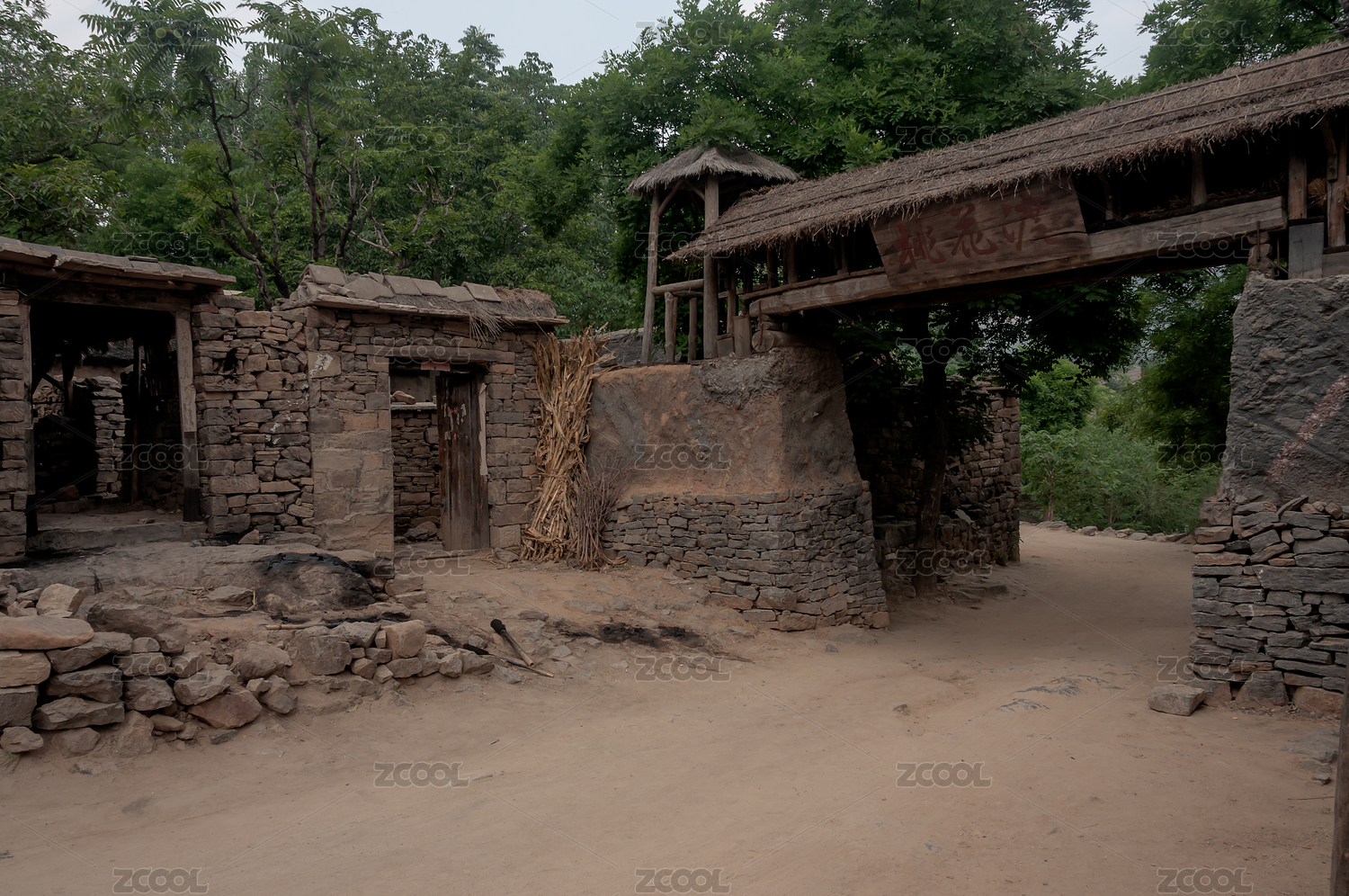 中国山东省临沂市沂蒙红色影视基地内沂蒙山村石头房民居