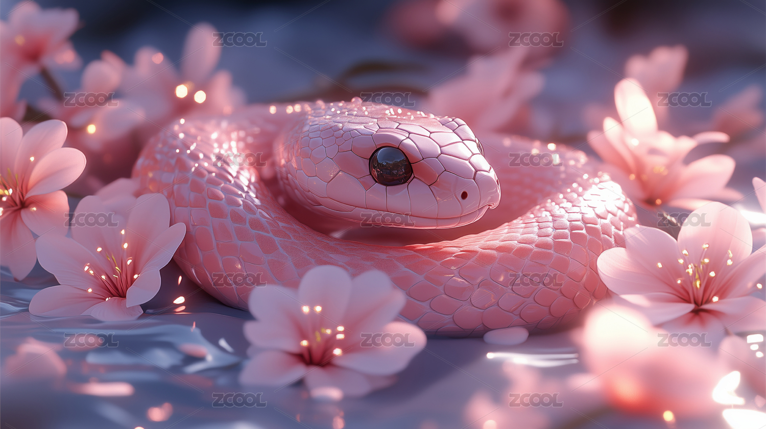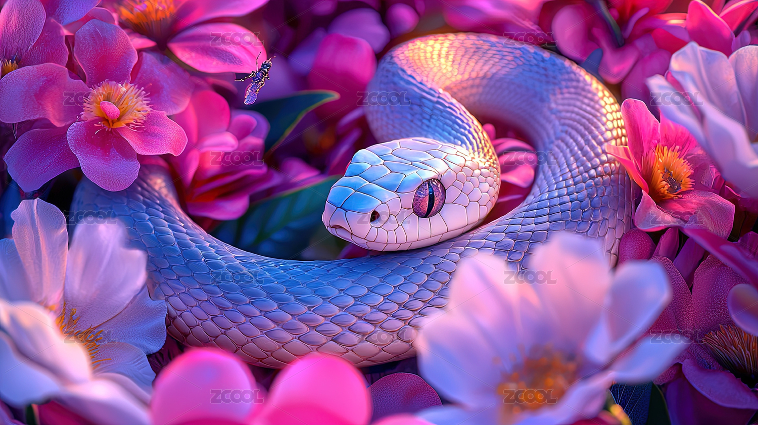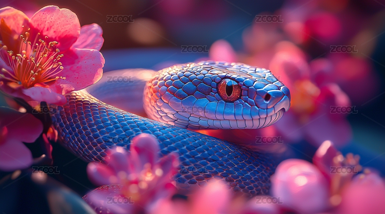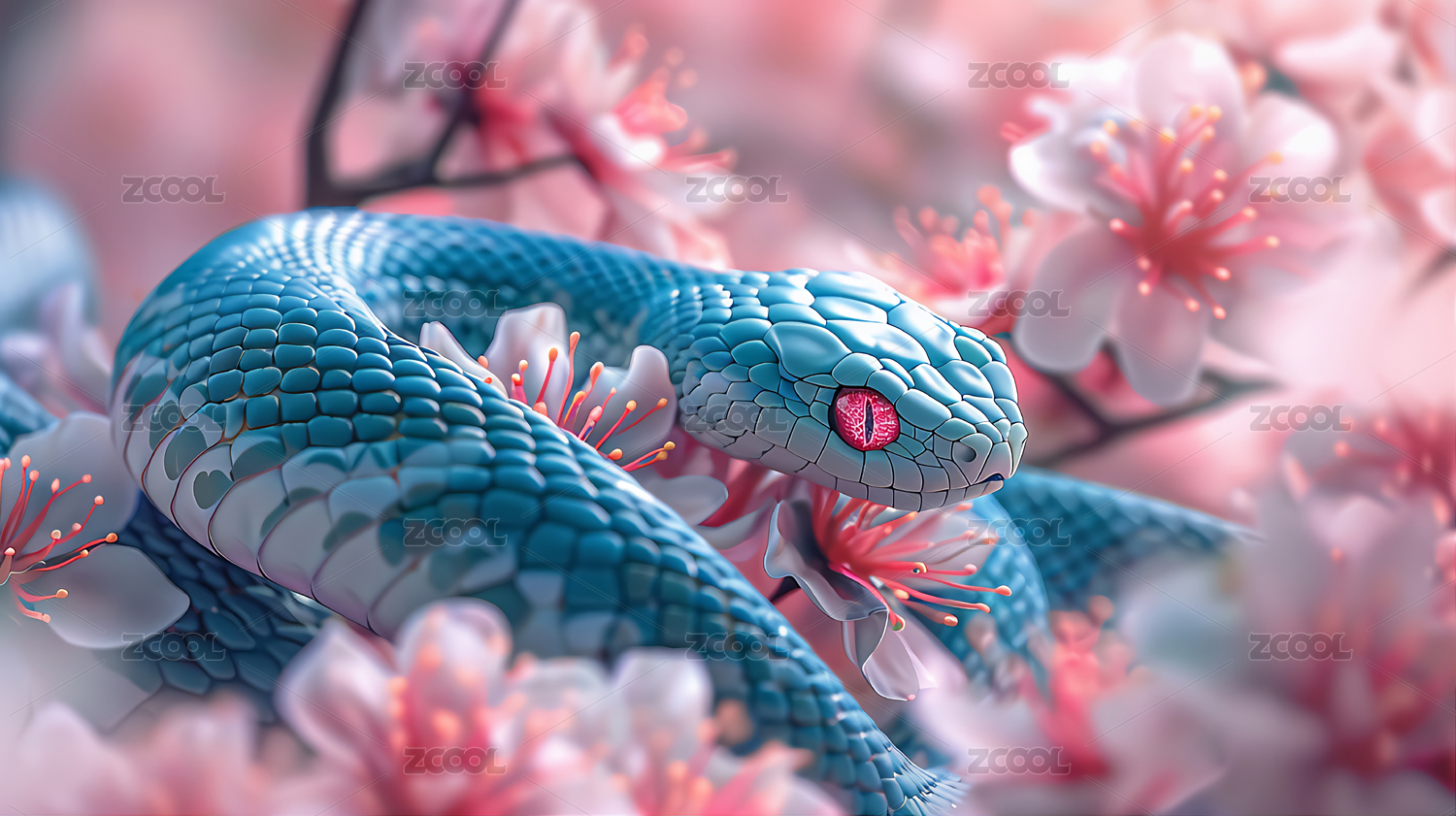 艺术,蛇, 花瓣, 春天, 梦幻, 插图, 唯美, 自然, 蓝色, 奇幻