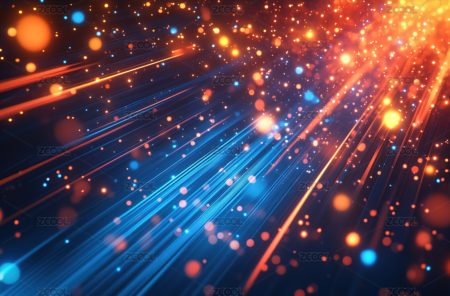 抽象光斑背景,橙色光点在深蓝背景上闪耀,