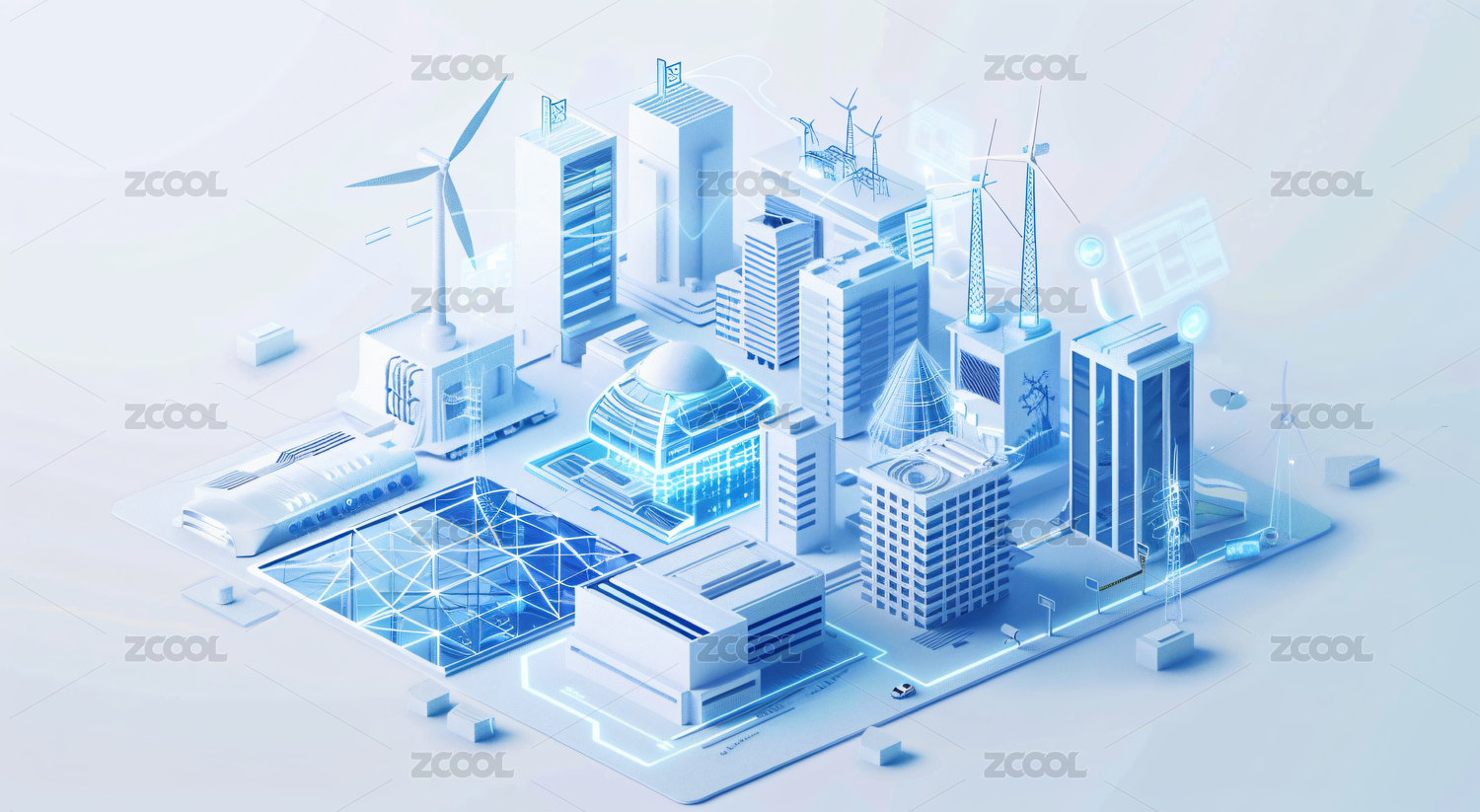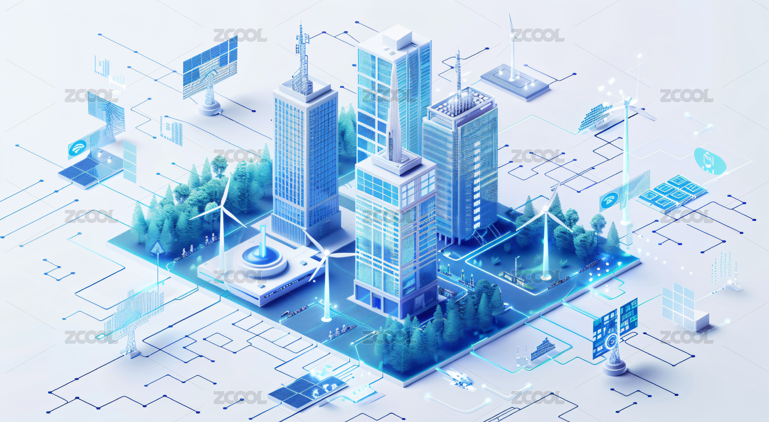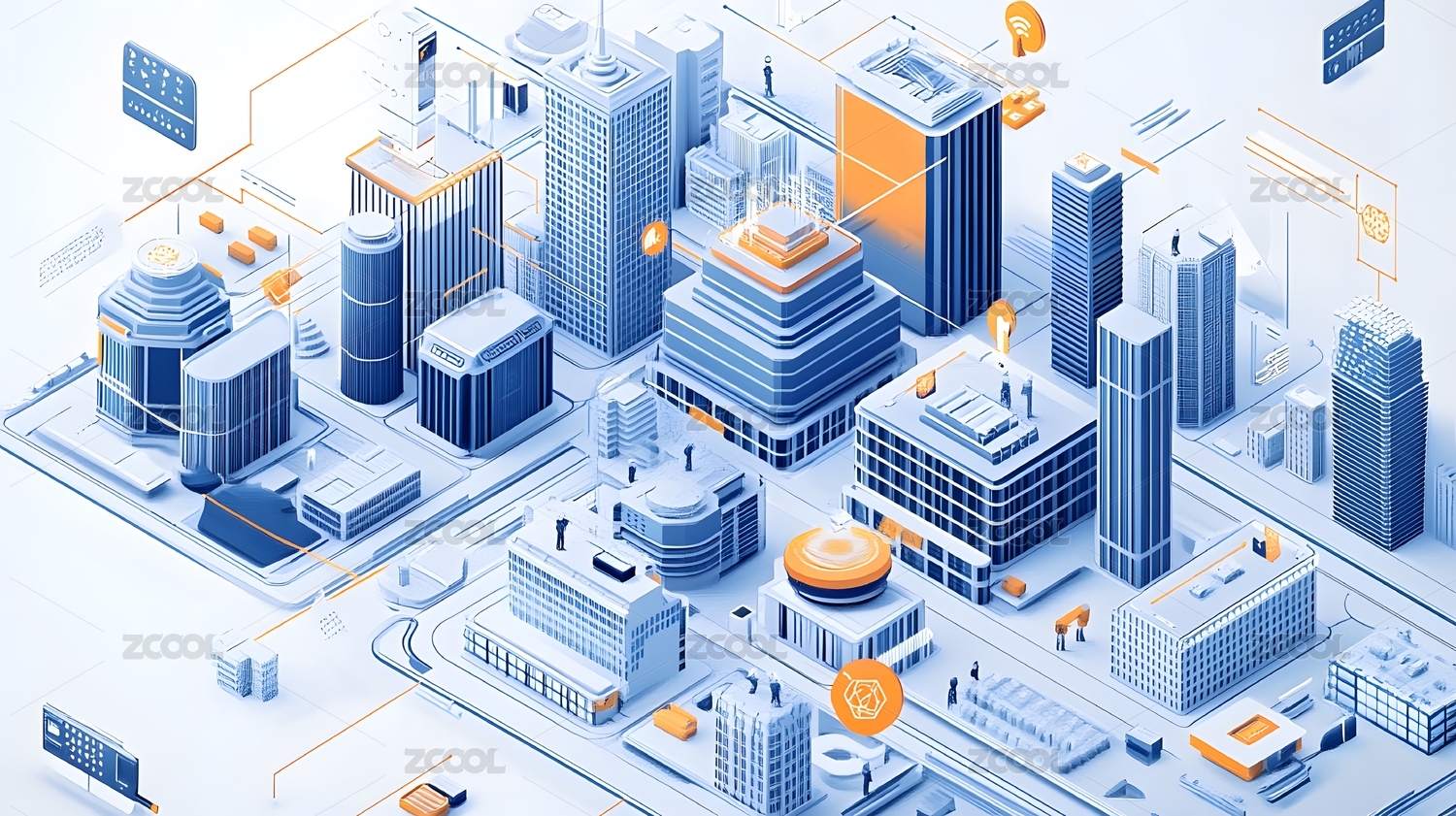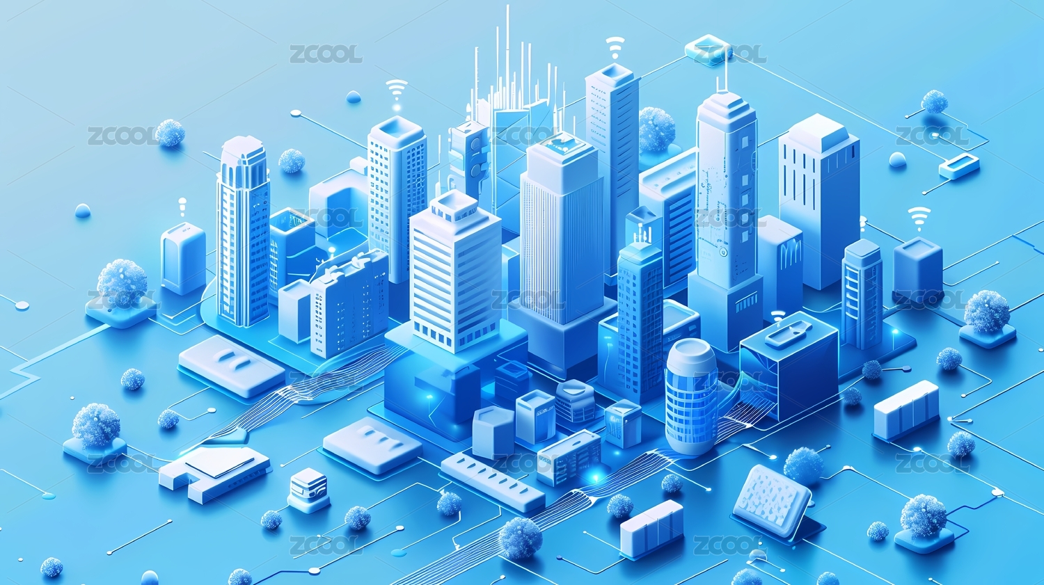 数码科技蓝白色智慧城市智能建筑插画海报背