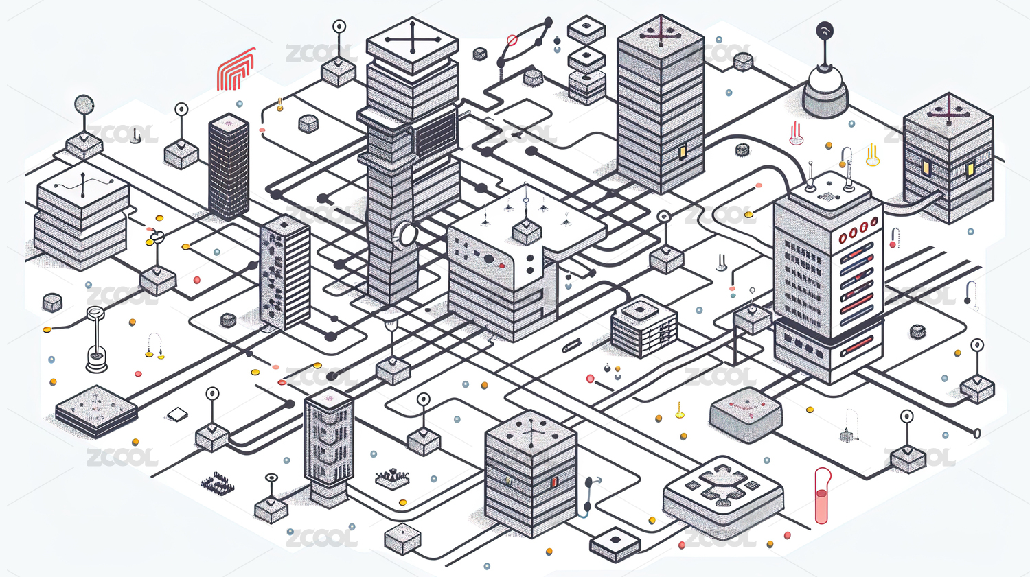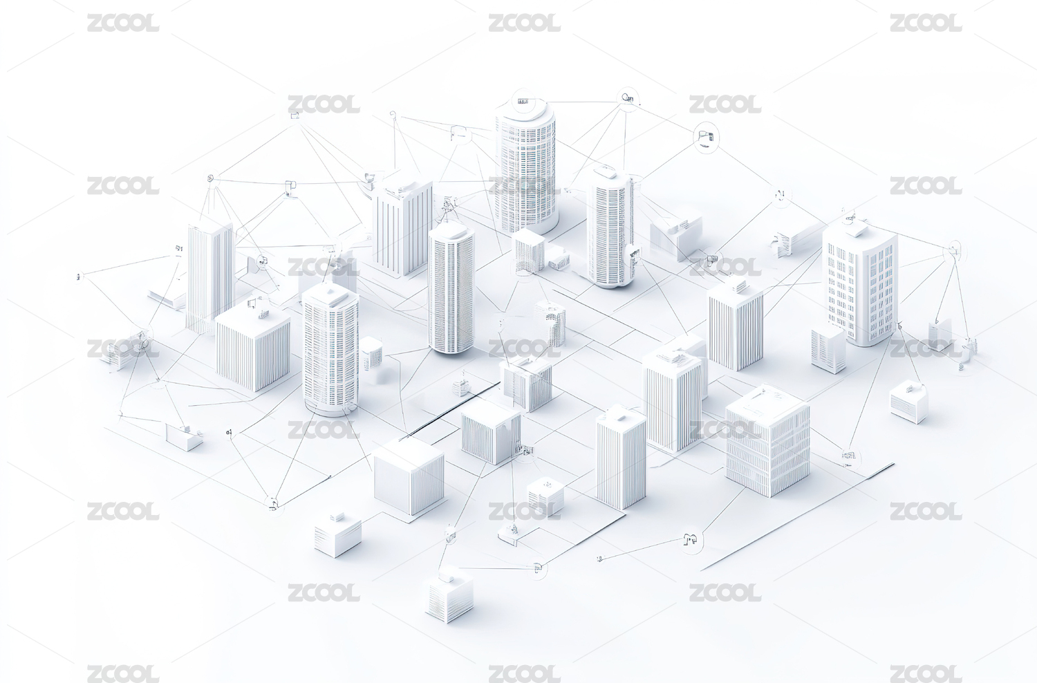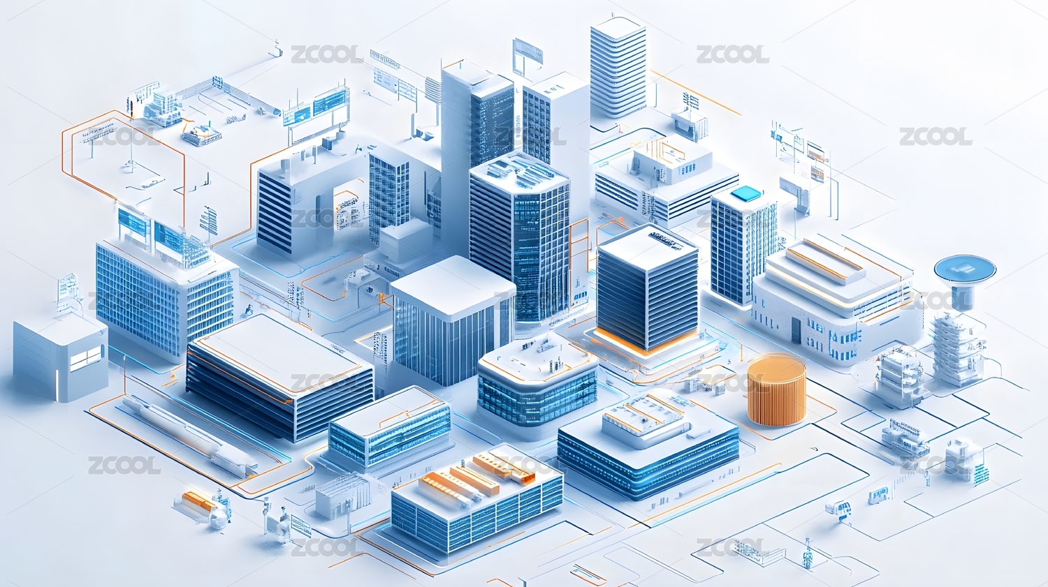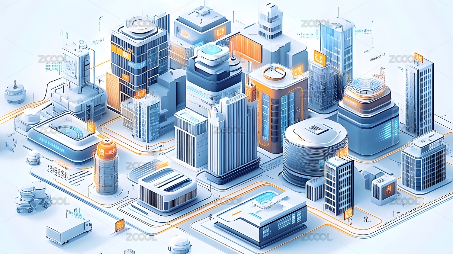 数码科技蓝白色智慧城市智能建筑插画海报背