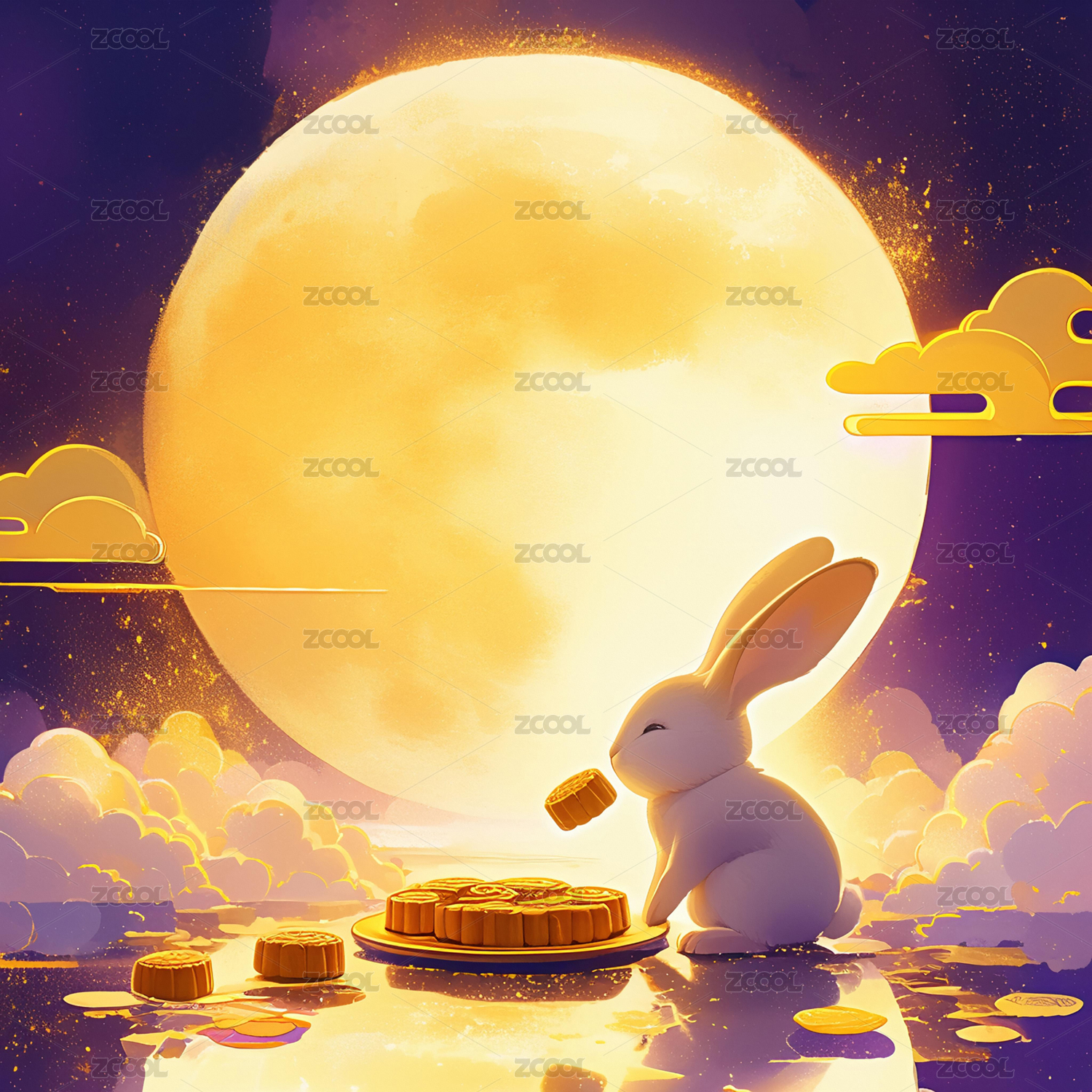 中秋节月下兔子和月饼
