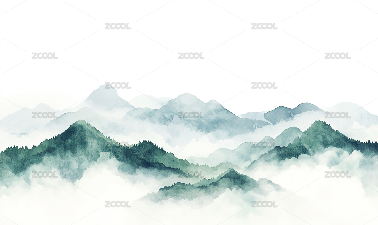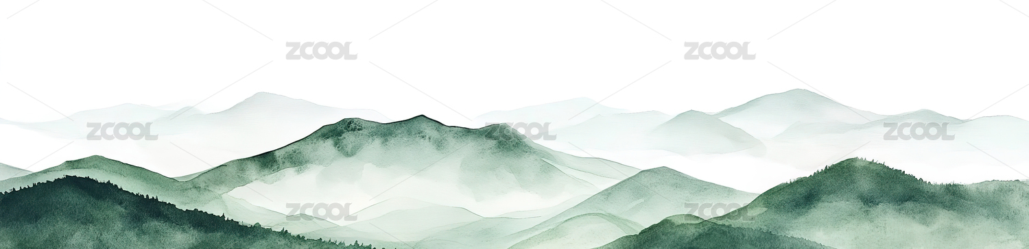 蓝绿色简约水墨山峰