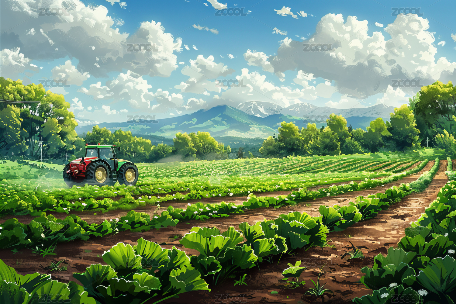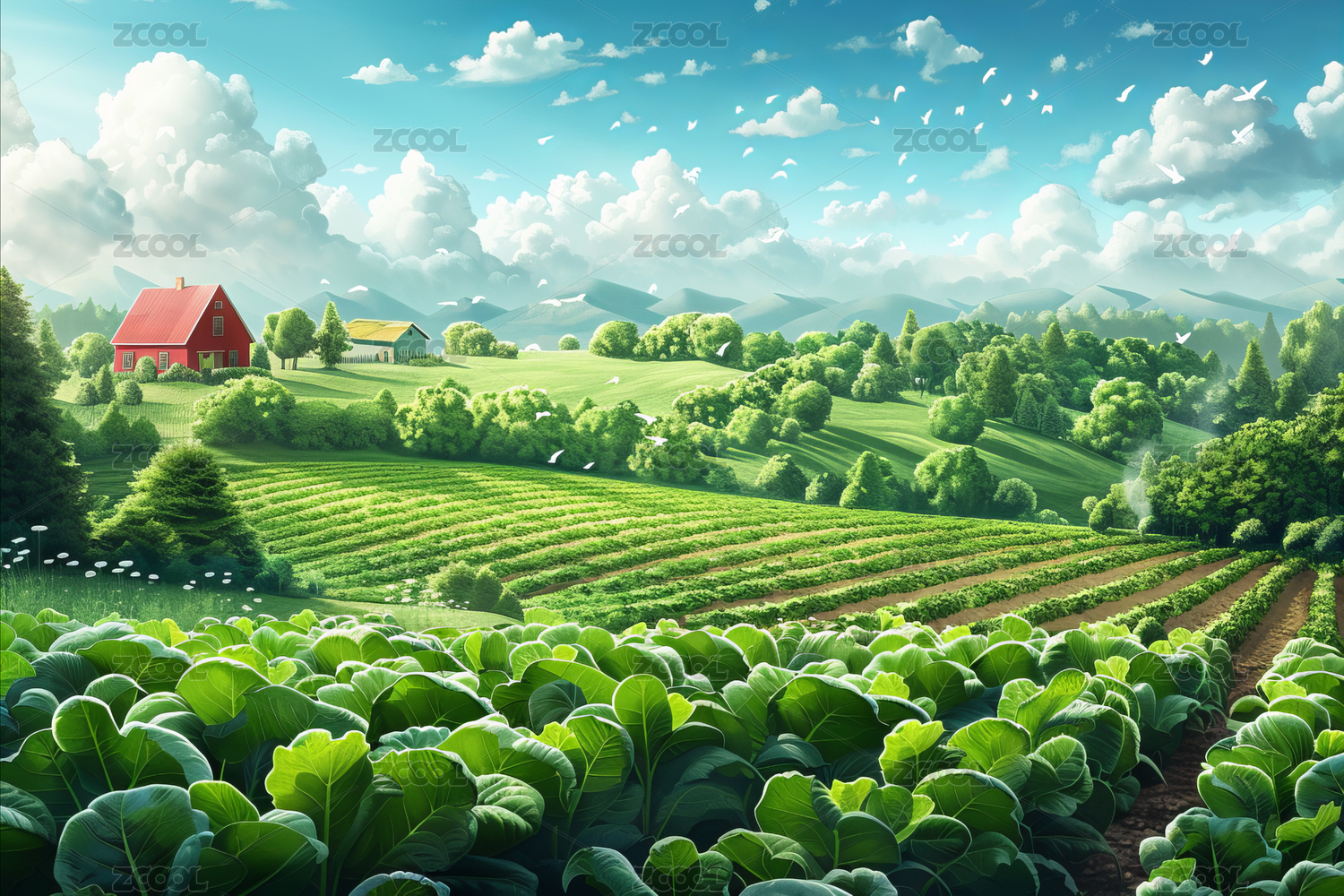 夏天户外自然节日大暑清新治愈唯美卡通漫画