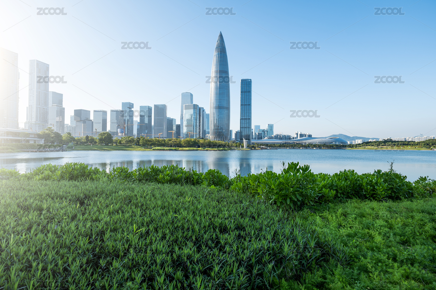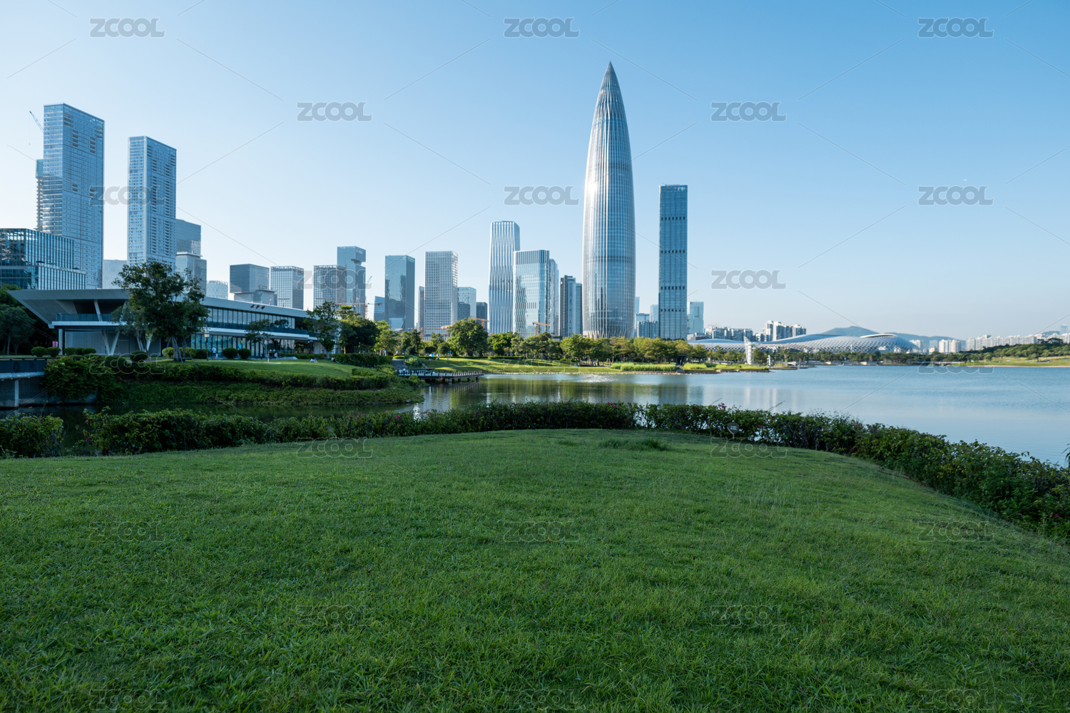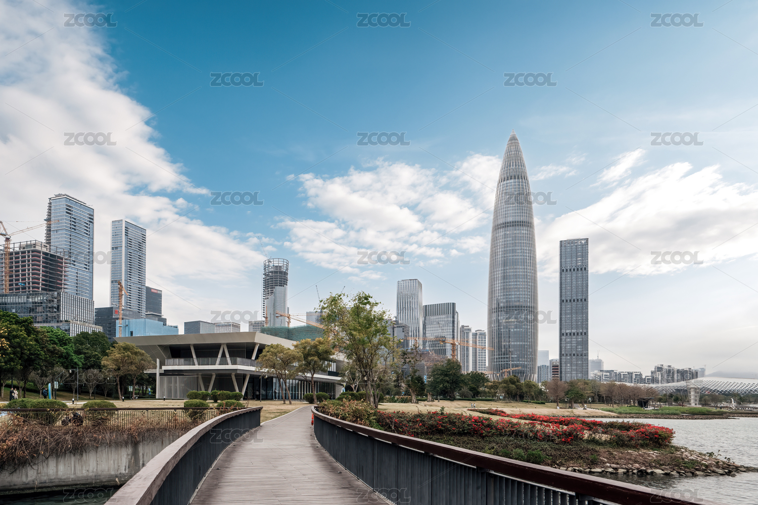 中国广东深圳南山区人才公园及后海金融建筑群风光