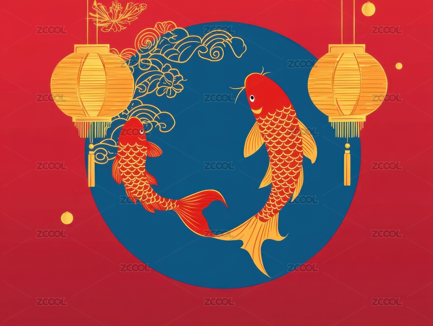红金锦鲤与灯笼