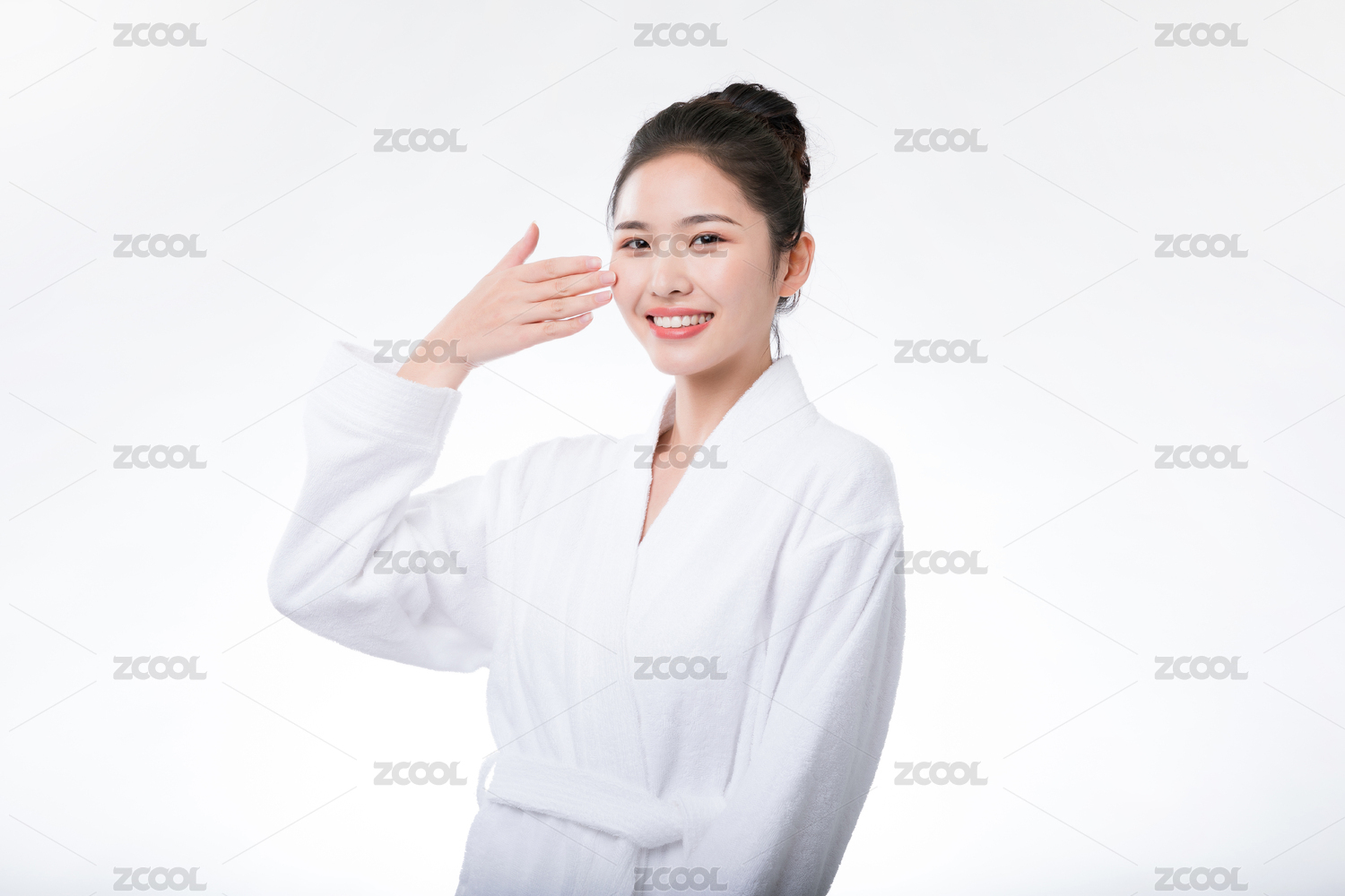 穿着浴袍护肤美容的女性