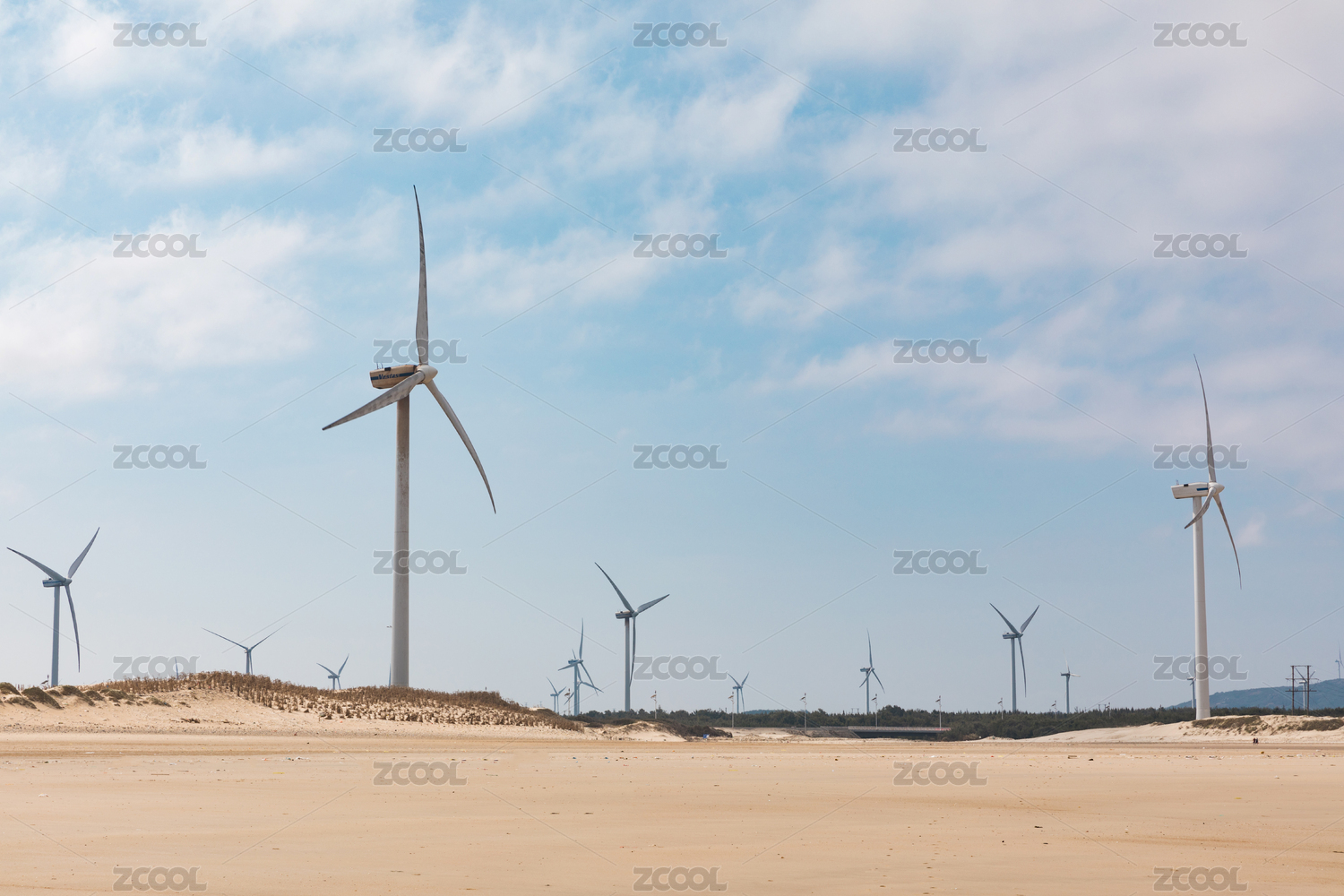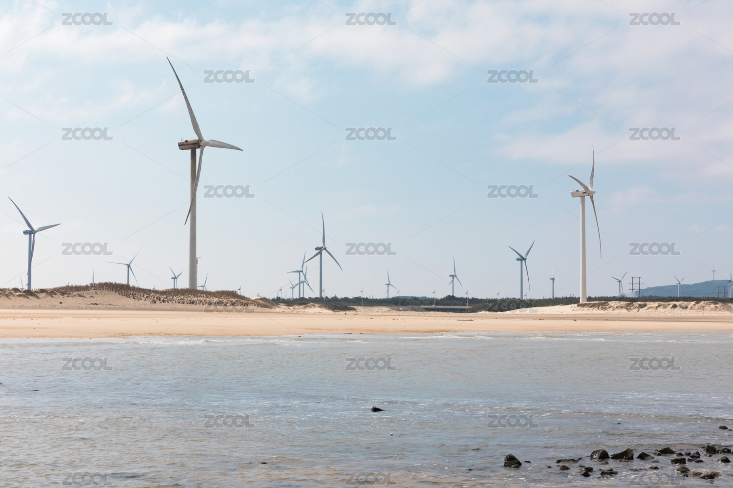 福建福州平潭县长江澳沙滩风力发电沿海风光