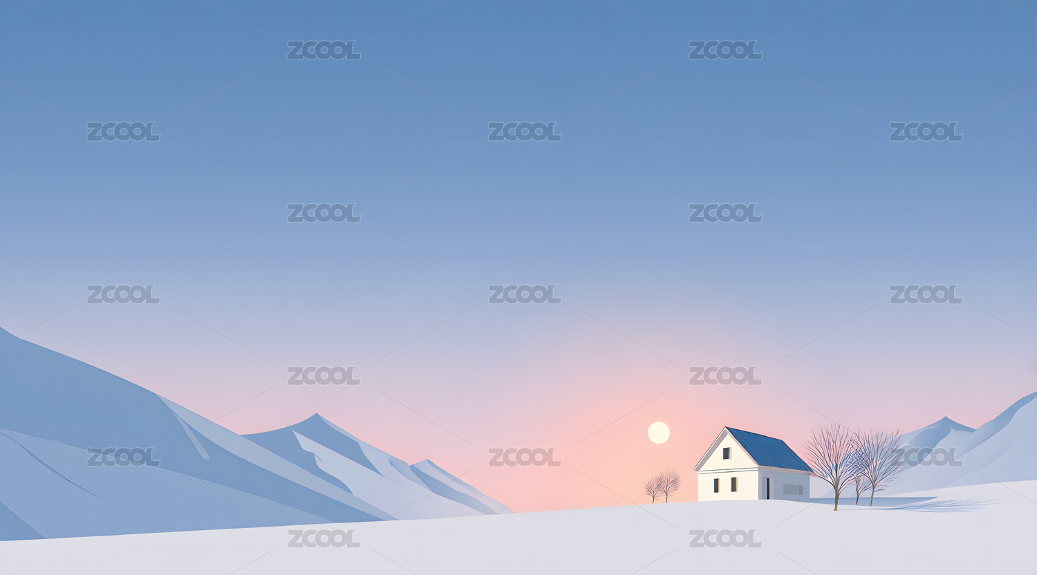 雪地房屋与蓝天插图