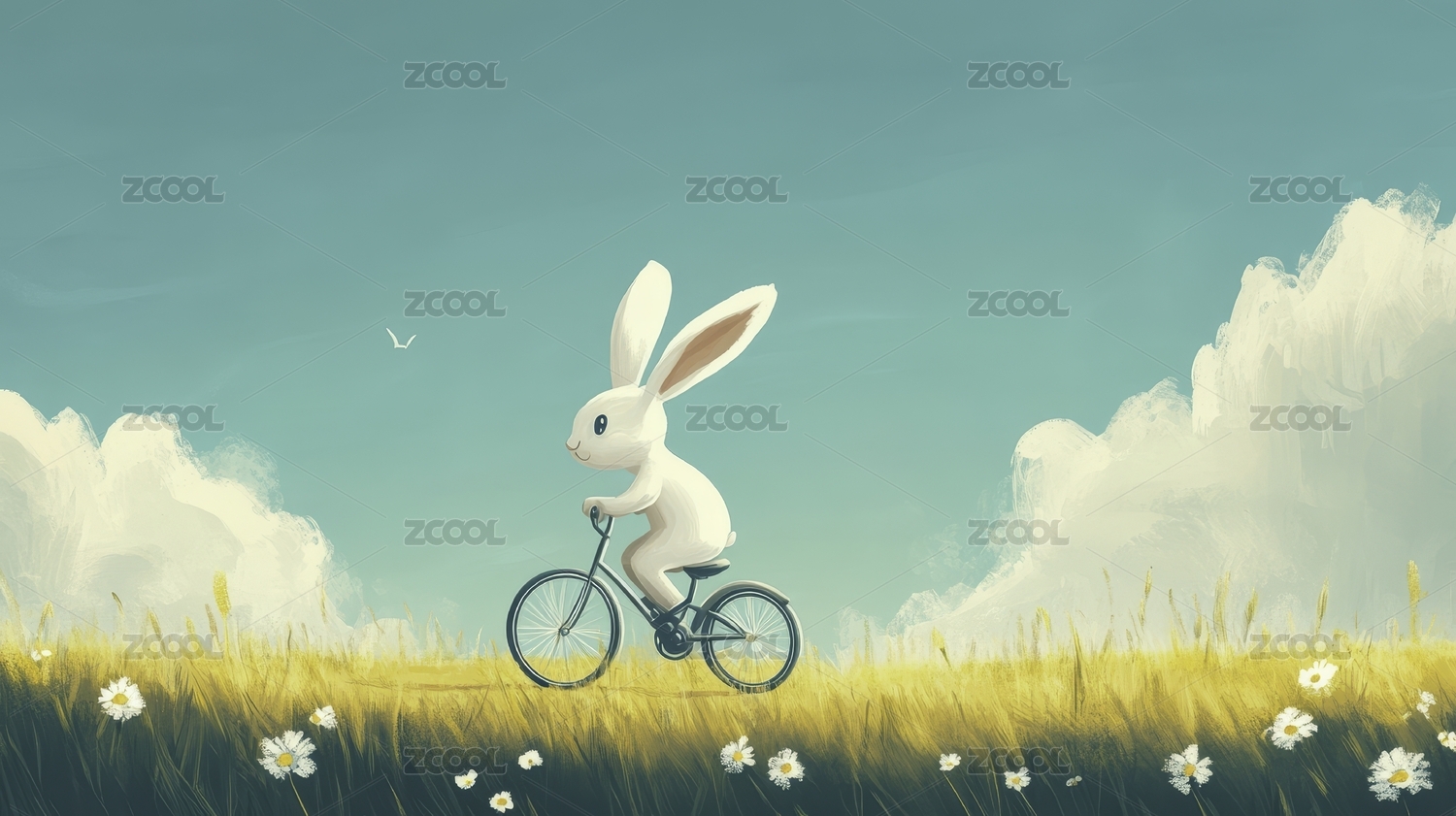 骑自行车的白兔子插画