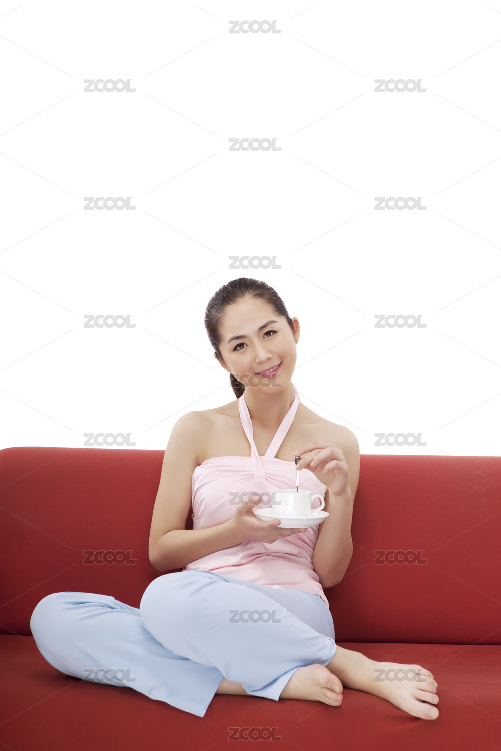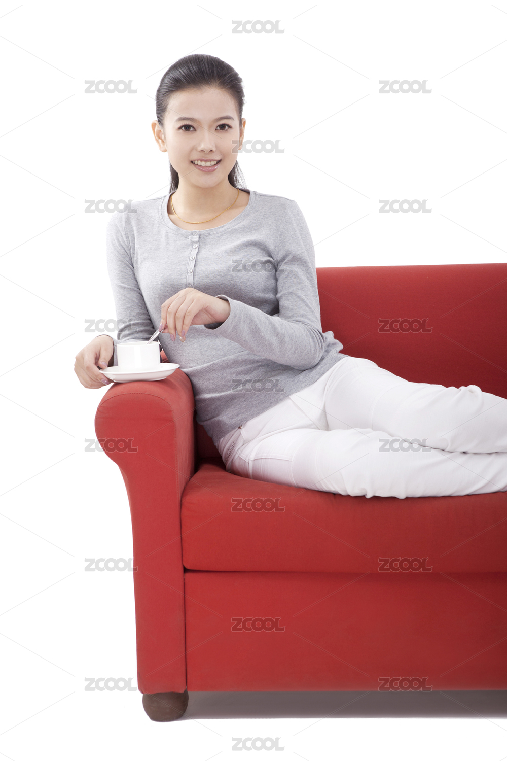 年轻时尚的女子坐在沙发上