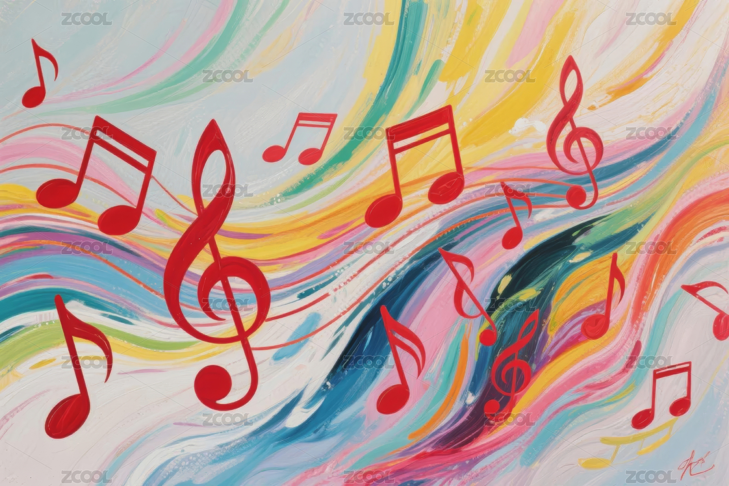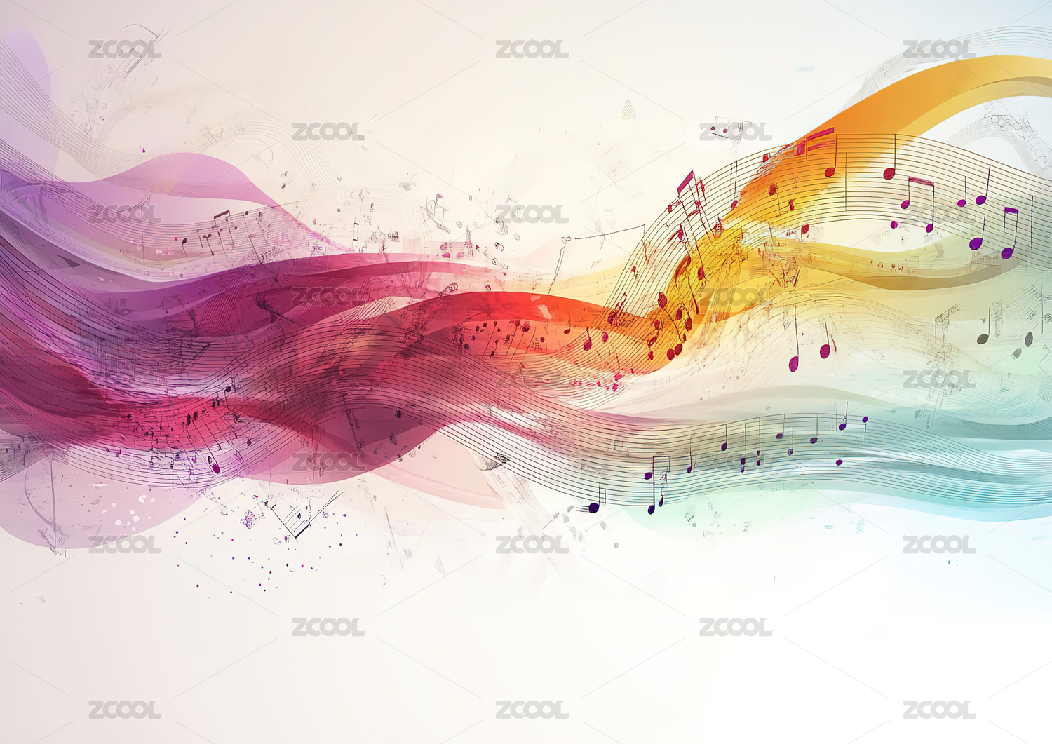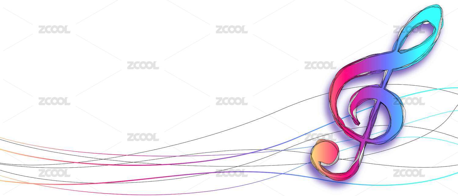彩色音符与波浪线条插画
