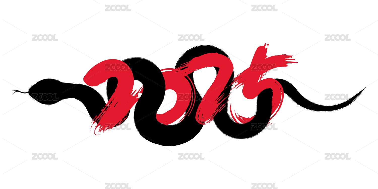 毛笔风格的蛇缠绕着数字2025
