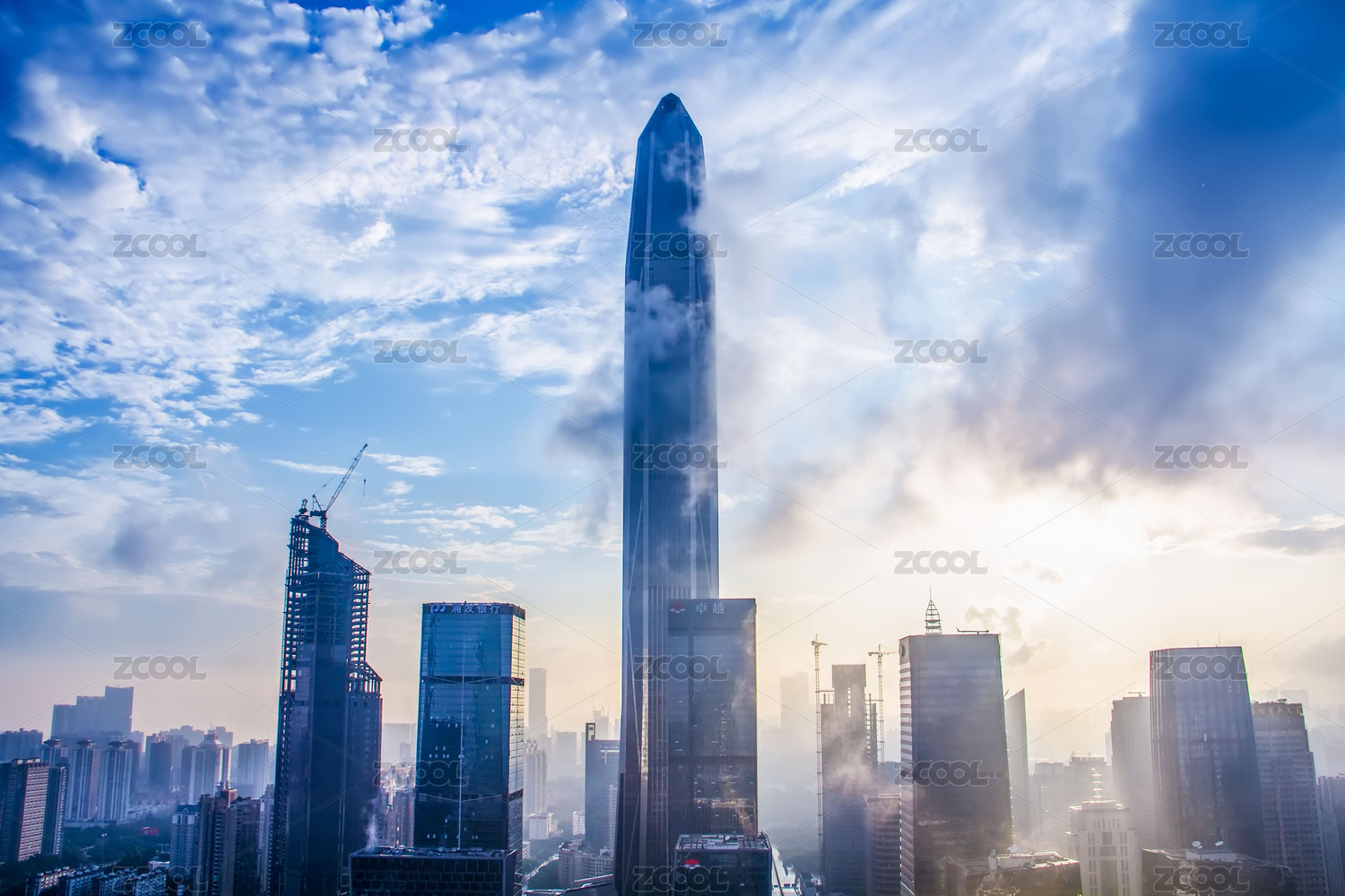 蓝天下的深圳平安大厦景观图