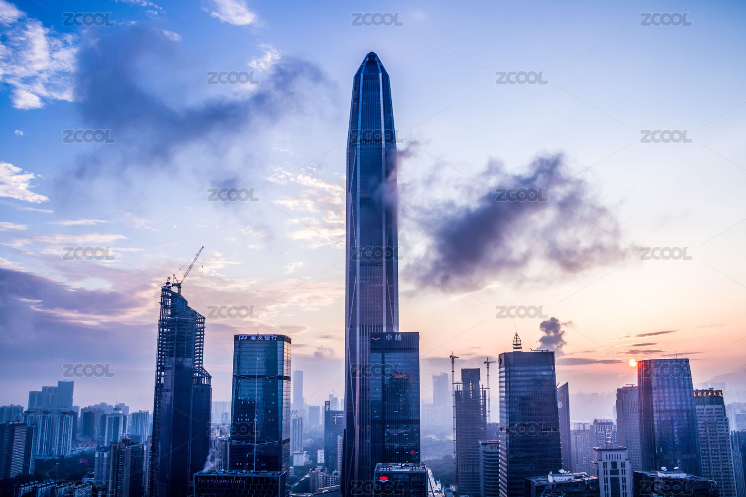 深圳莲花山俯瞰平安金融中心晨曦