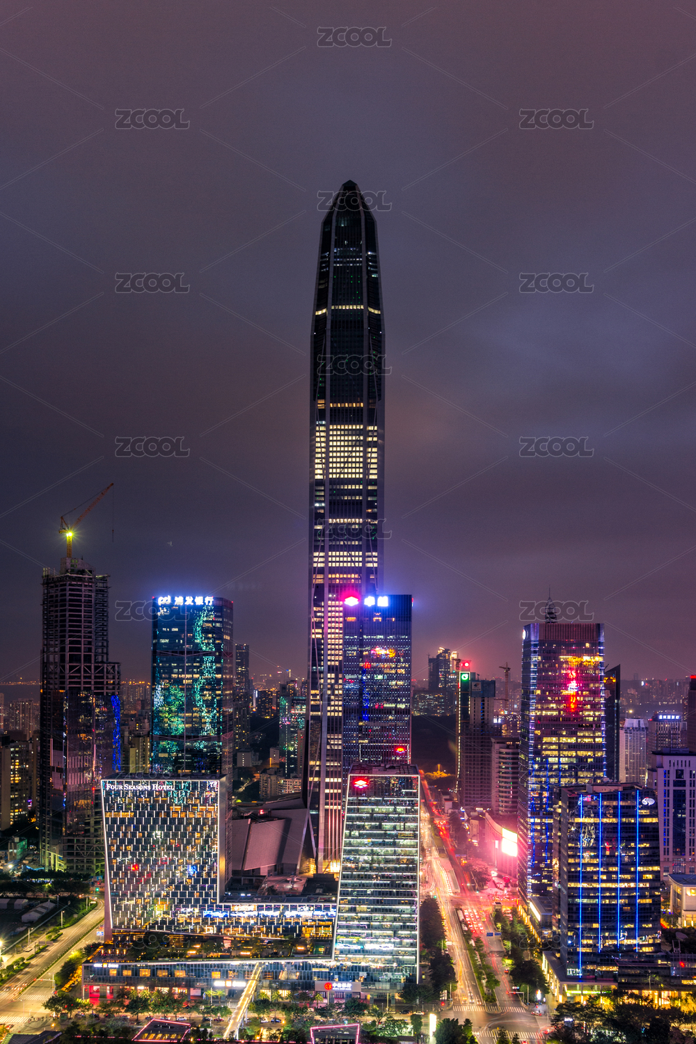 深圳市中心摩天大楼的夜景