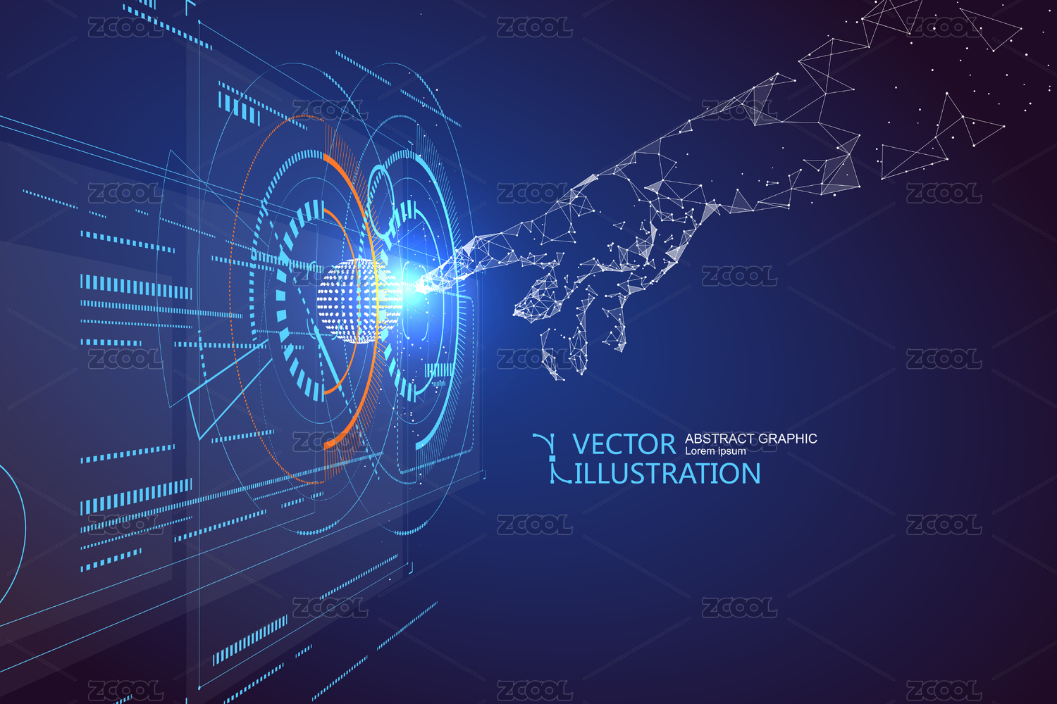触摸屏幕的手,AI人工智能科技概念创意矢量图