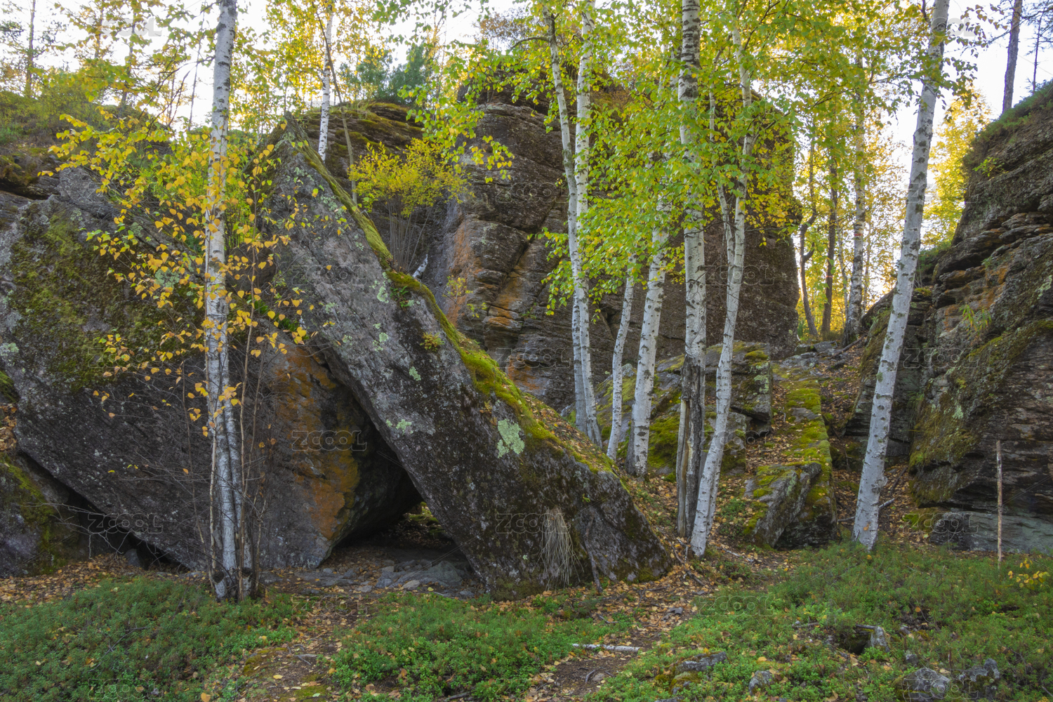 岩石,奇石,苔藓,树,金秋,森林,中国,大兴安岭,苍山石林,呼中区
