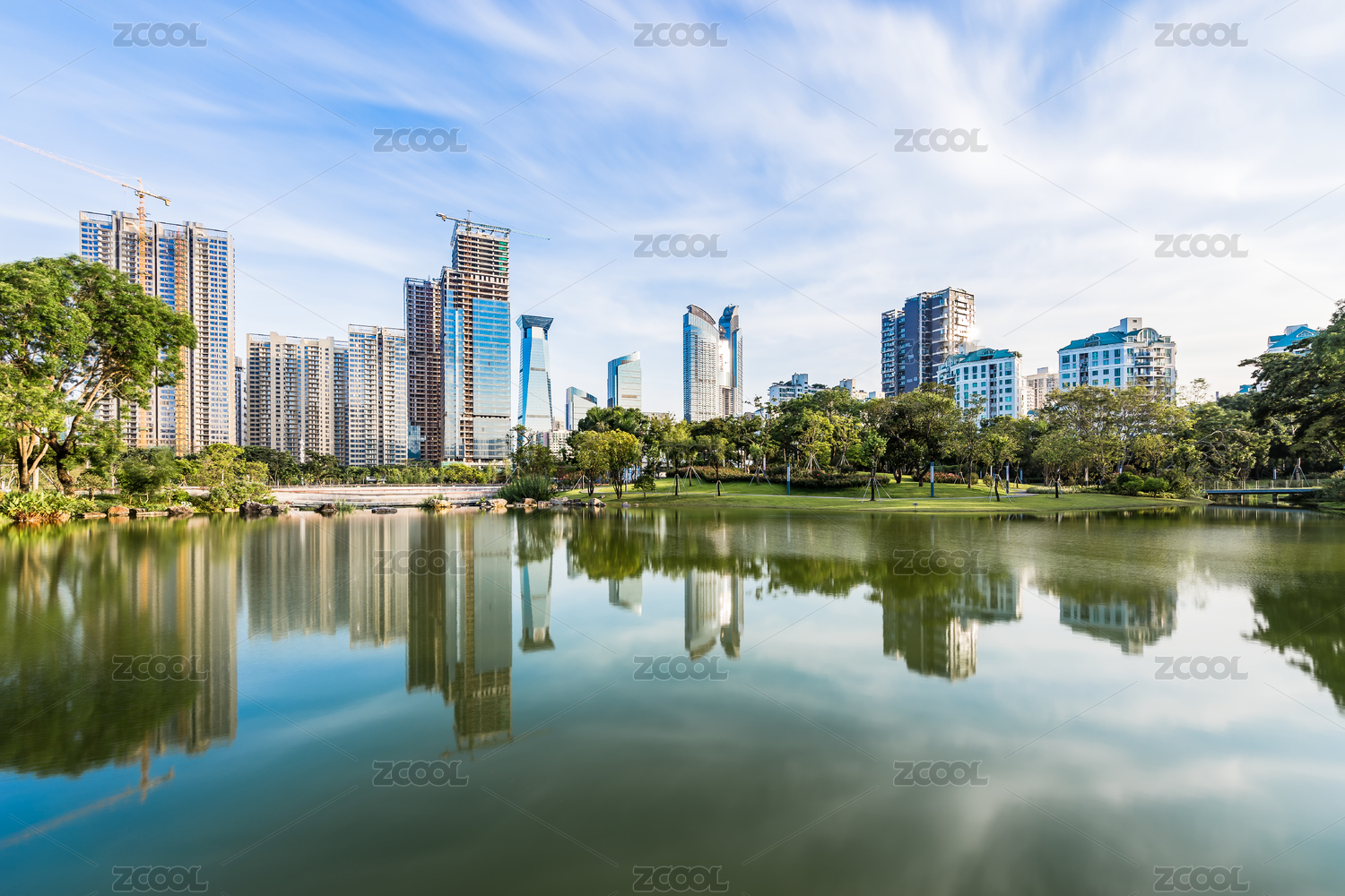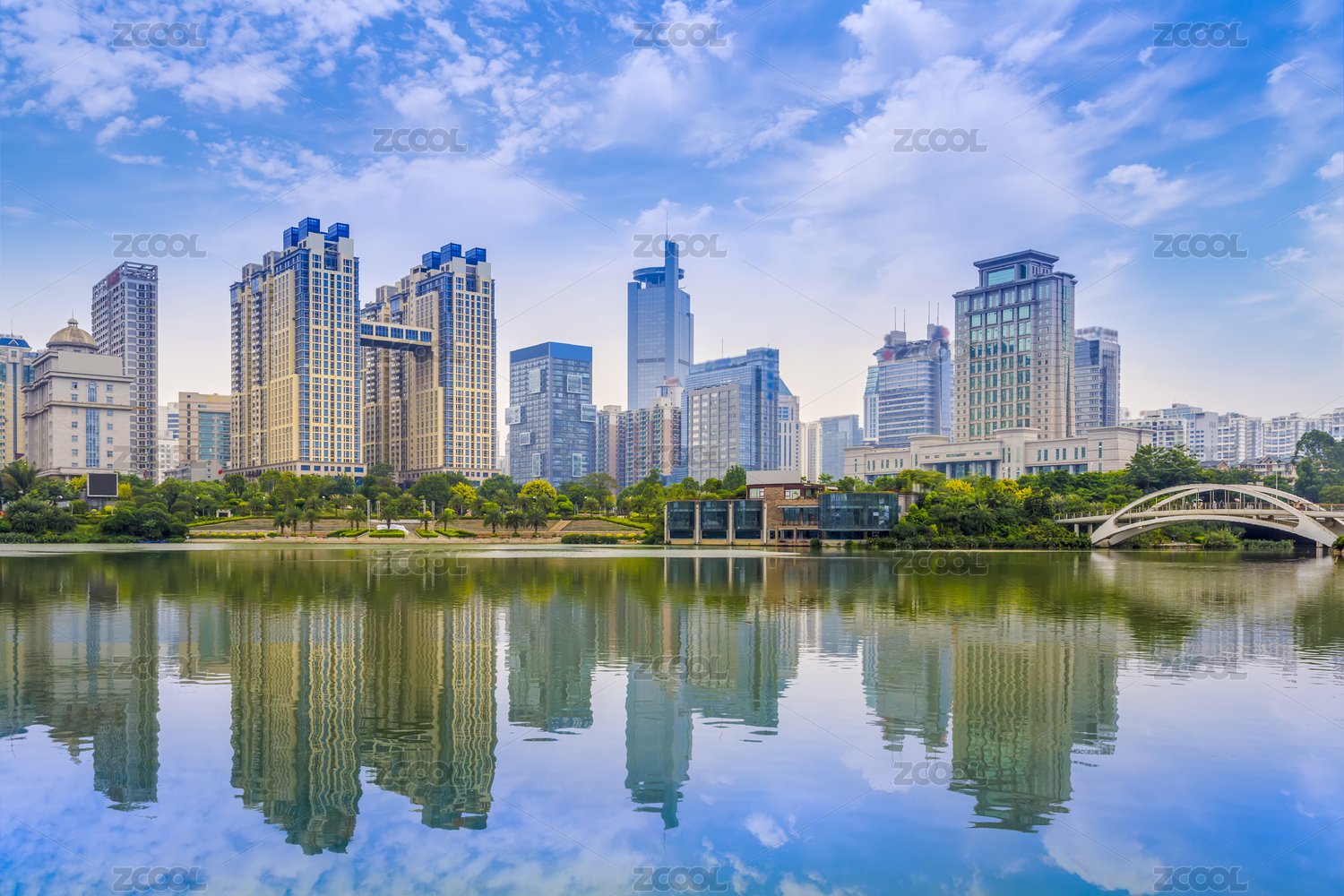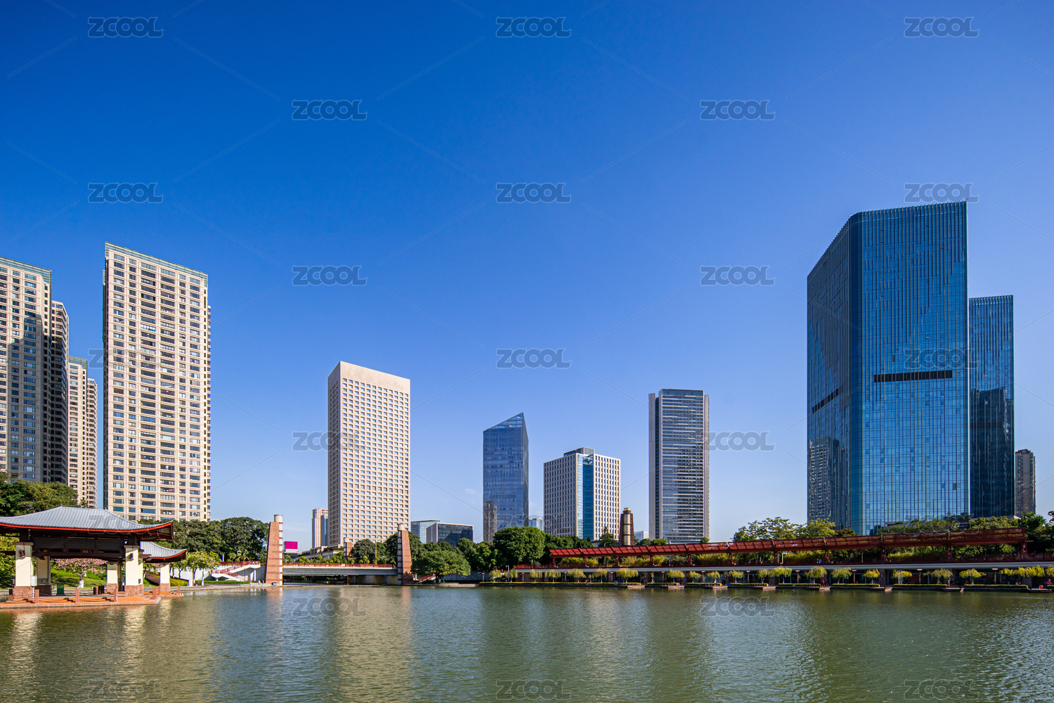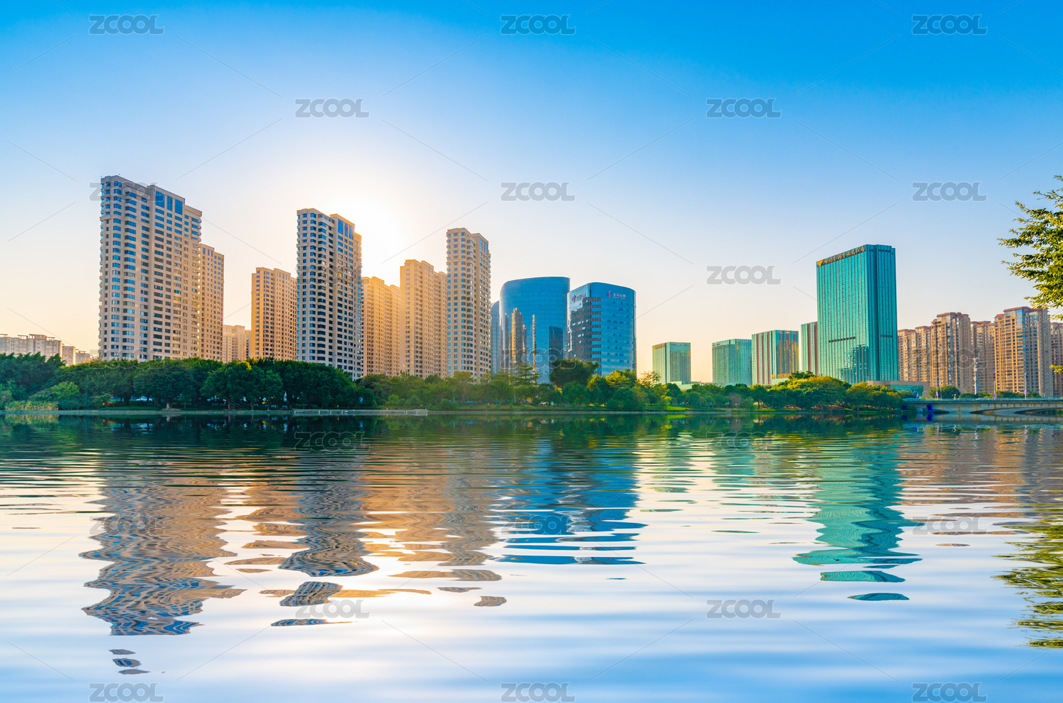 深圳香蜜公园湖水和建筑倒影
