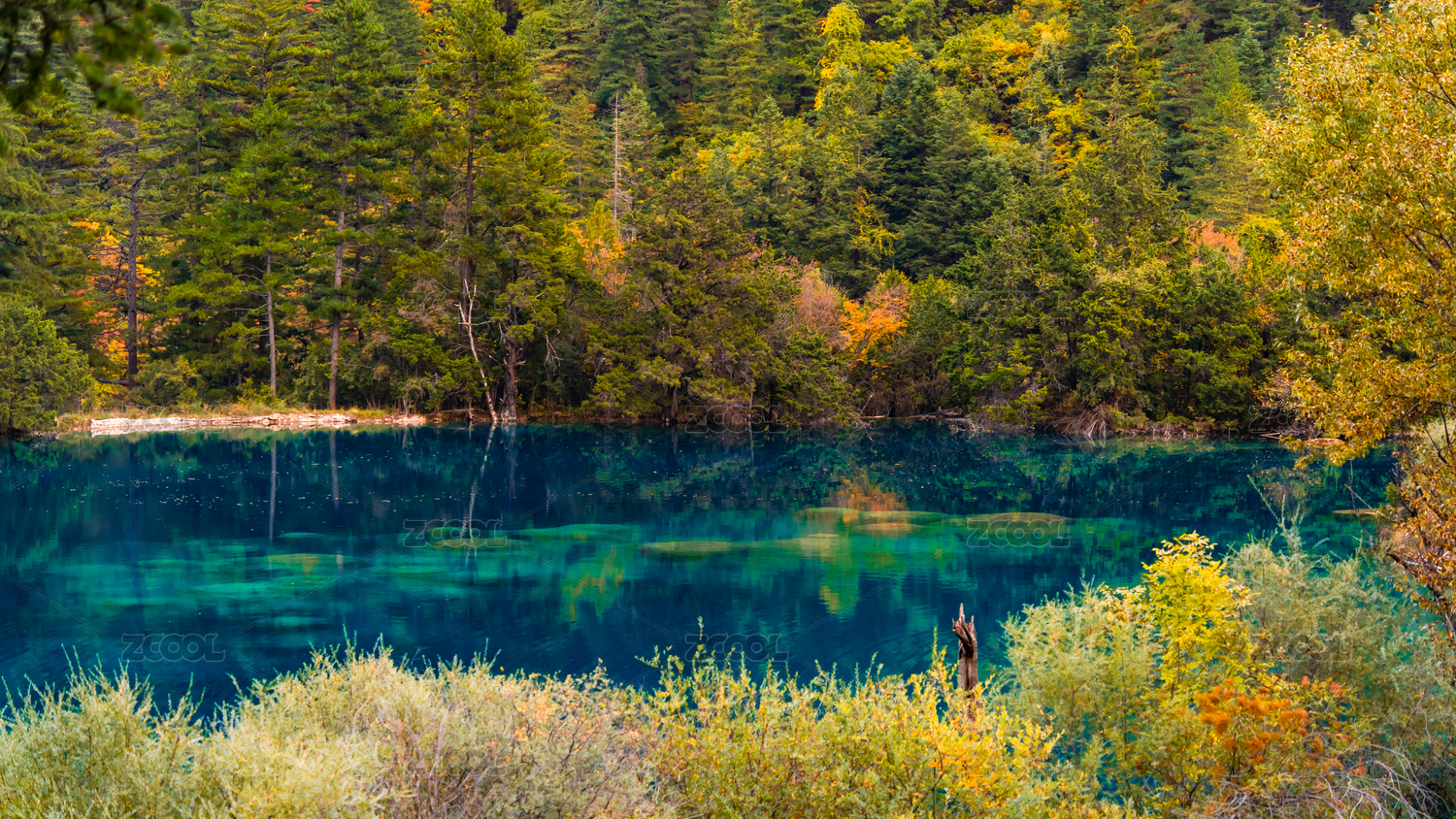 九寨沟,五花海,四川,沉木,倒木,钙华,秋季,秋色,秋天