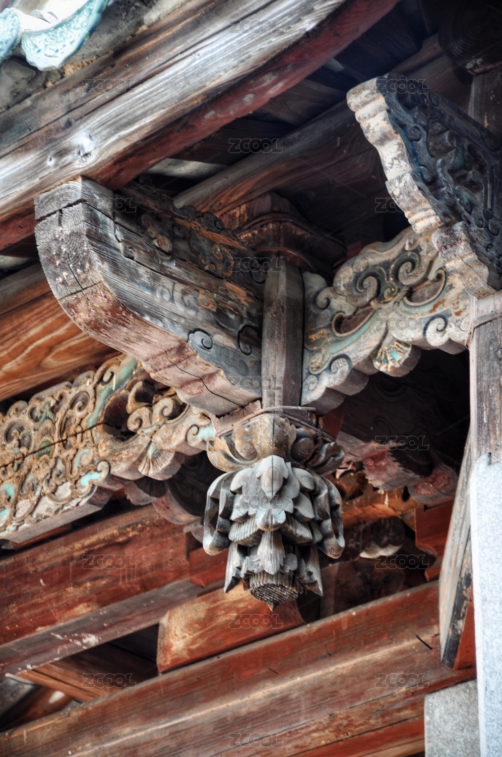 中国福建省武夷山市下梅古村斗拱木雕装饰建筑物