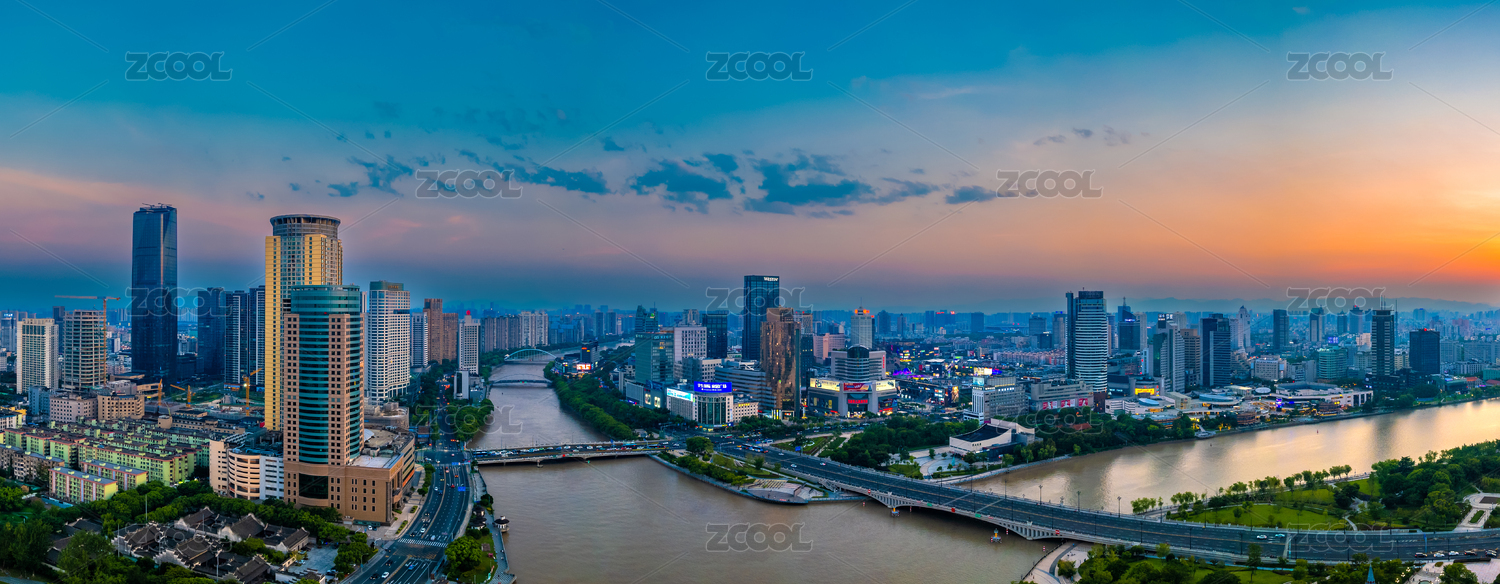 宁波三江口日落天际线