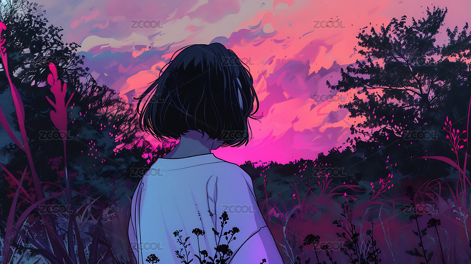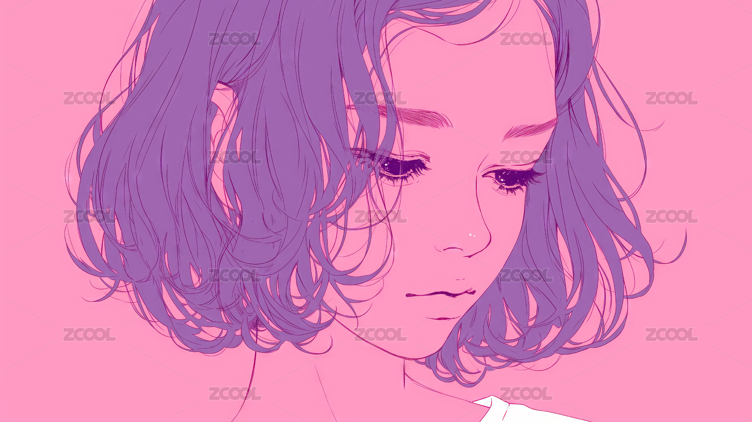 深蓝色卡通二次元风格短发女孩头像科幻插画