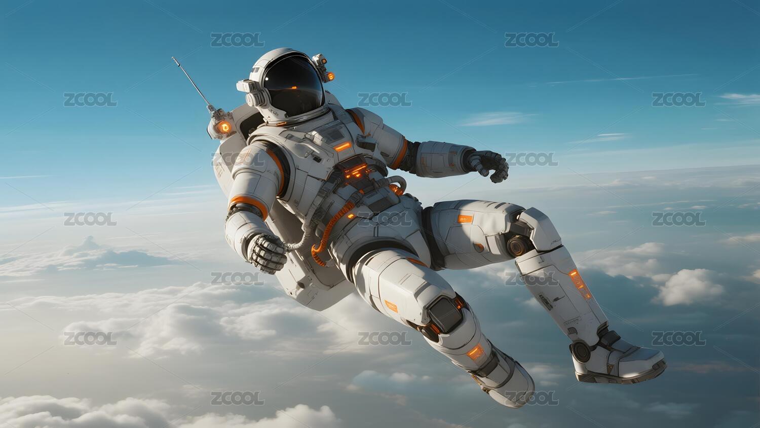 宇航员在高空漂浮