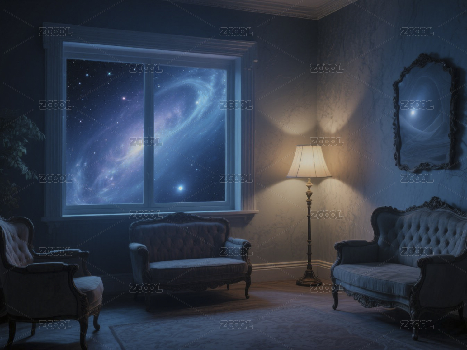 住房,概念,未来,旅游,温馨,床,遨游,窗户,外太空,星云