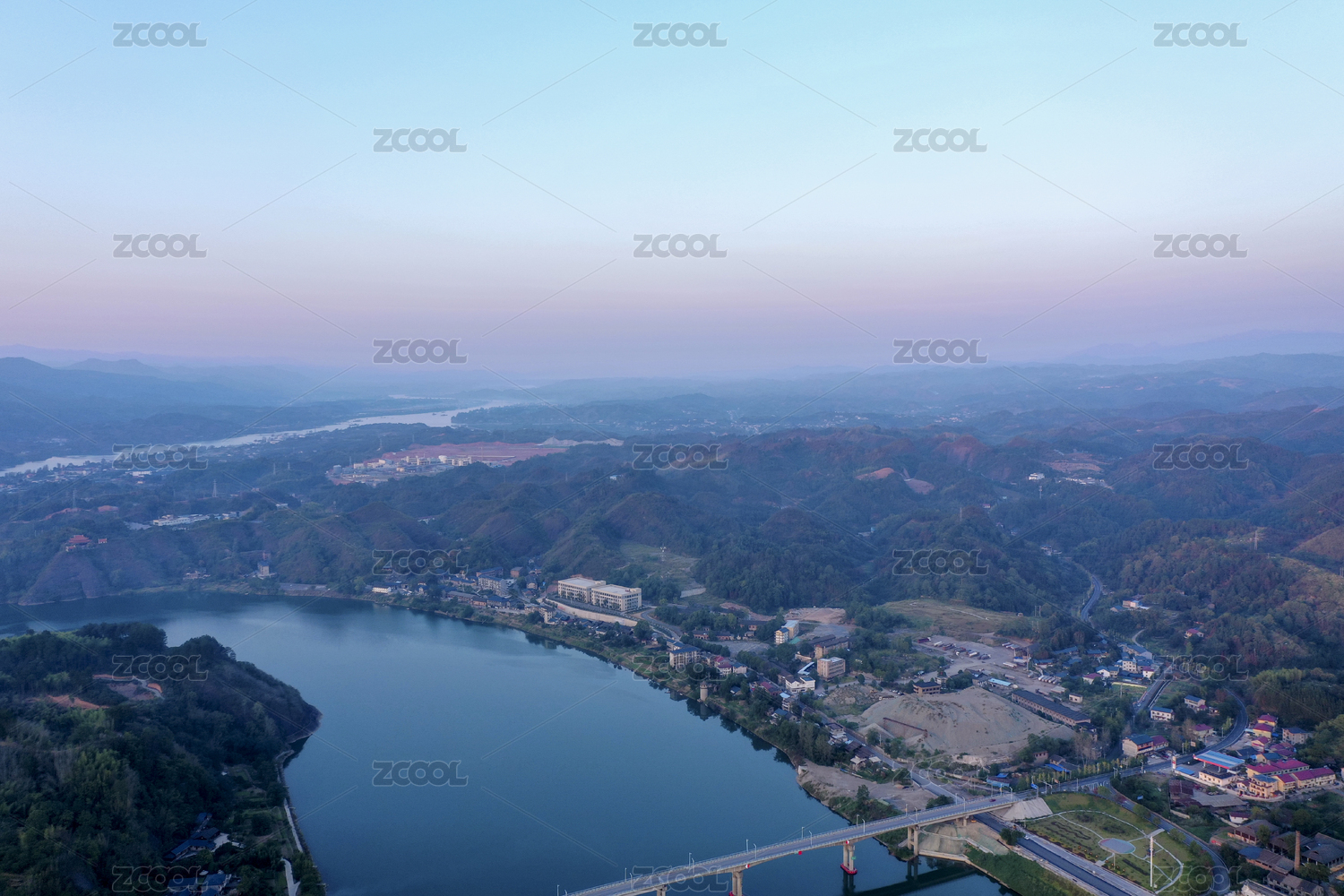 中国浙江省杭州市建德梅城镇沿江风光航拍