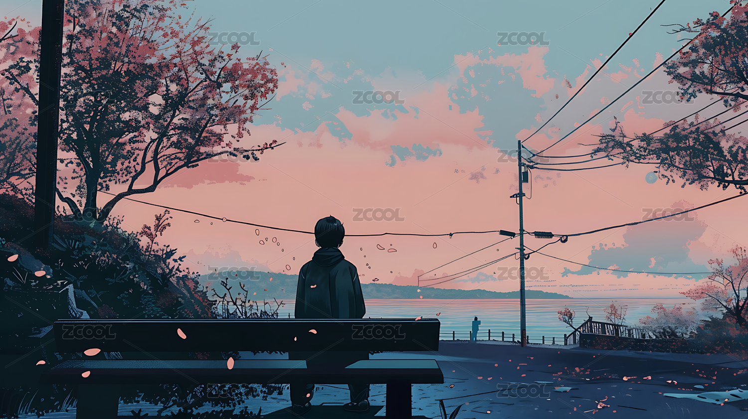 登高,秋色,远眺,风景,白鹭,水墨,远山,中国风,风景画,雪山