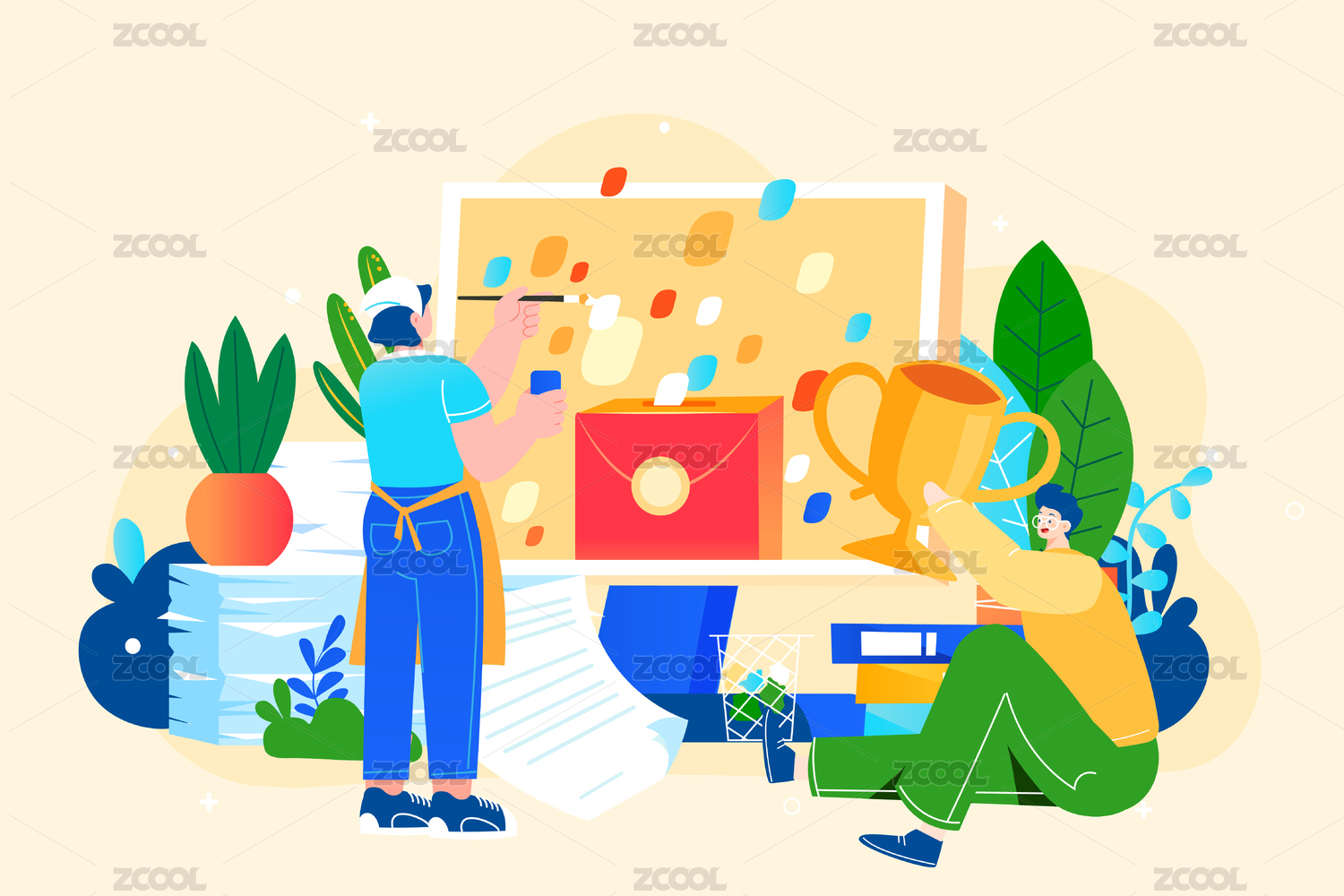 高效协作的男女达成高效业绩,矢量扁平概念插画
