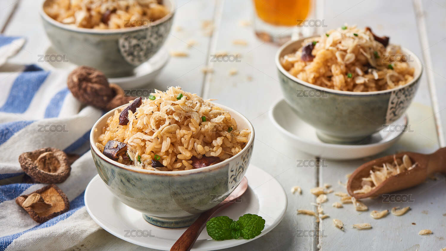 家常美食酱油拌饭盛放在黑色大瓷碗中