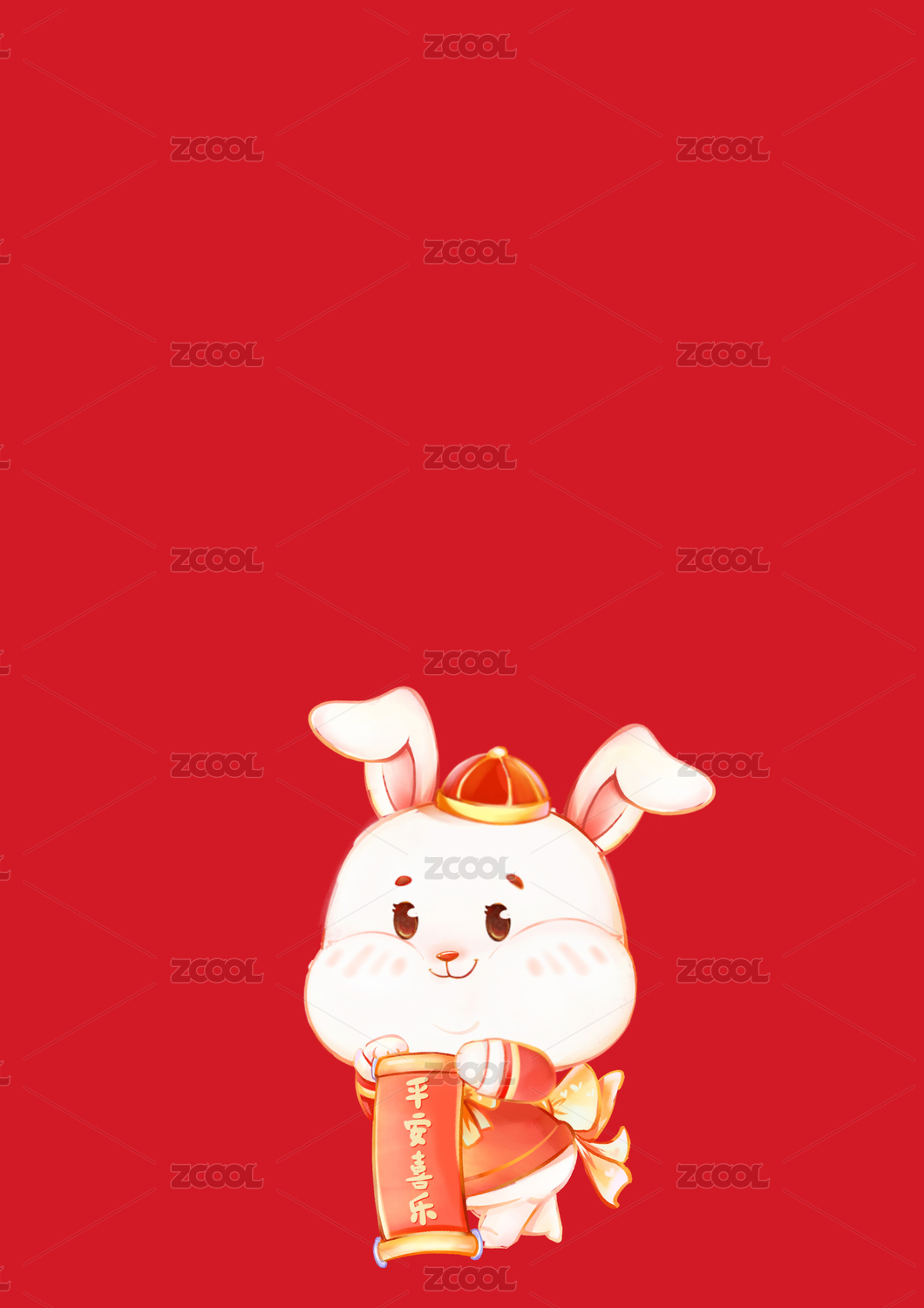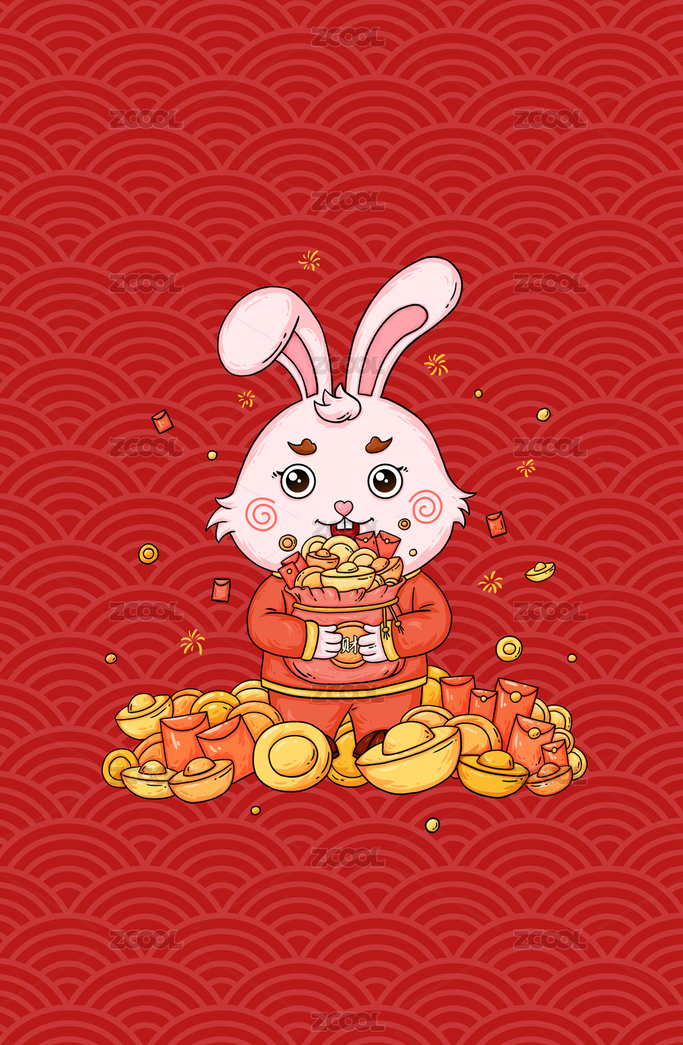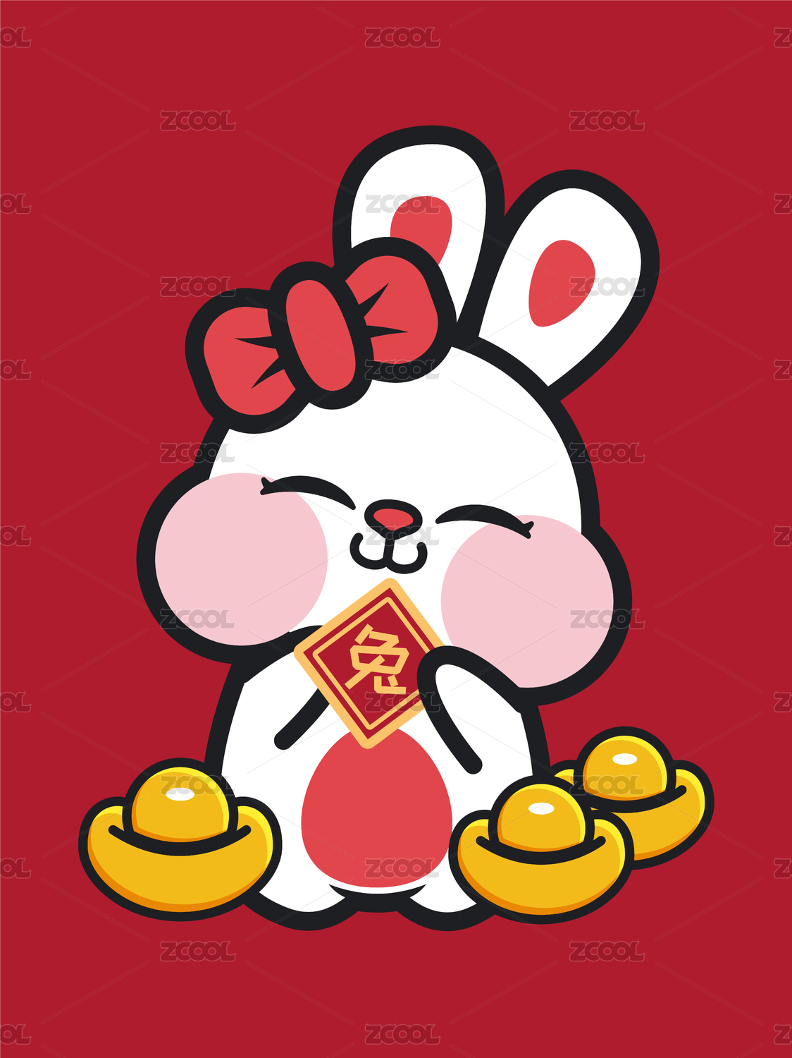 兔年春节贺图卡通可爱白色兔子祝福招财暴富