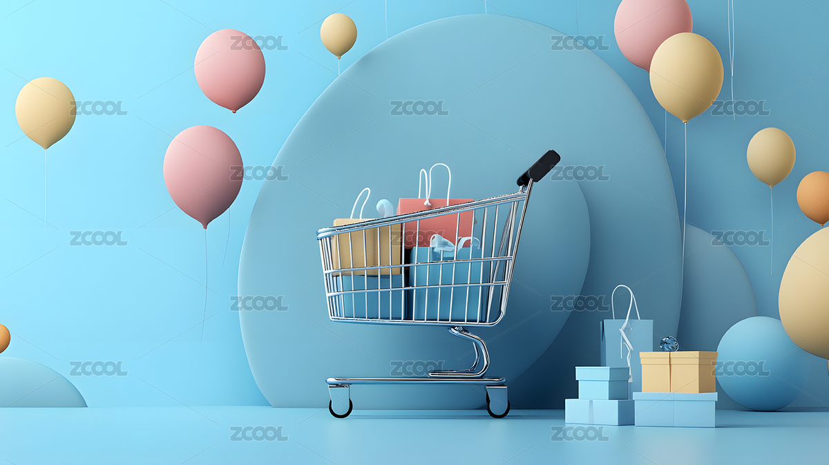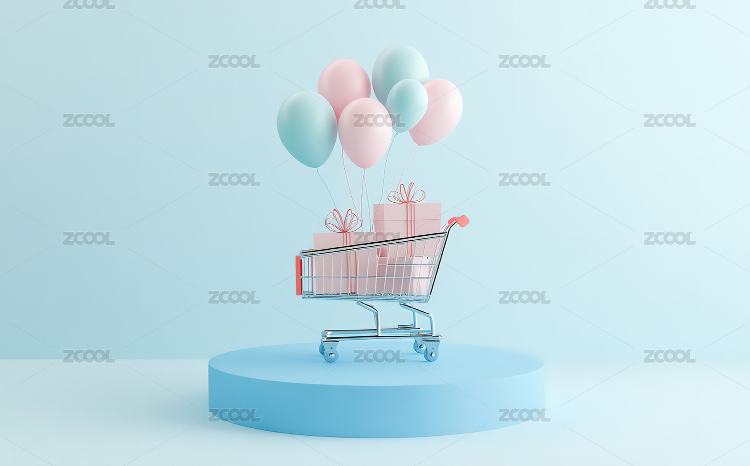 粉红色背景下的鸡蛋和玩具购物车特写镜头