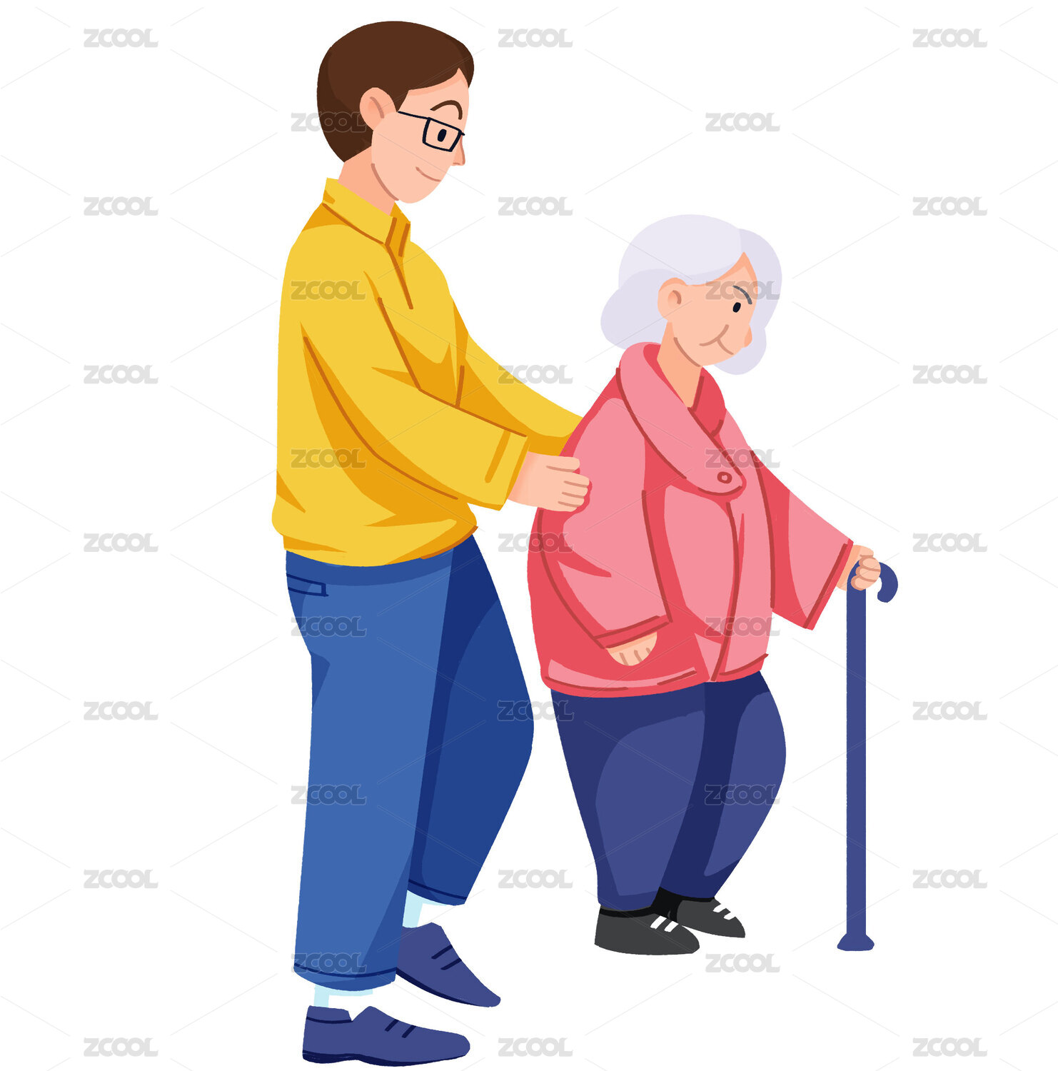 卡通重阳节亲子团圆家人关爱老人矢量插画
