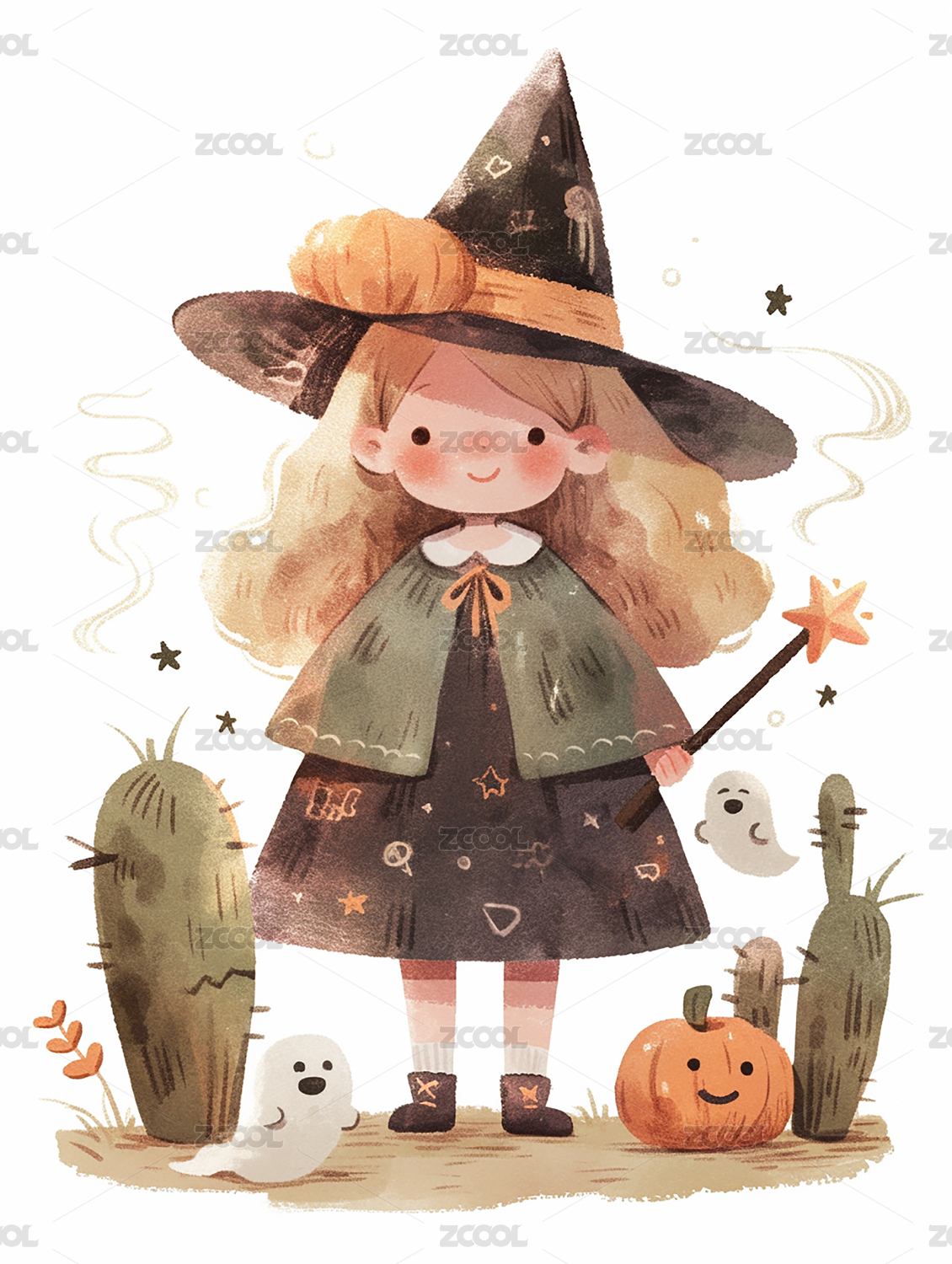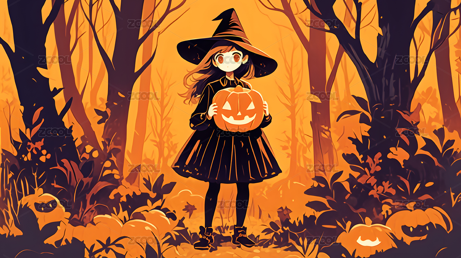 万圣节,节日,女孩,卡通,插画,人,可爱,南瓜灯