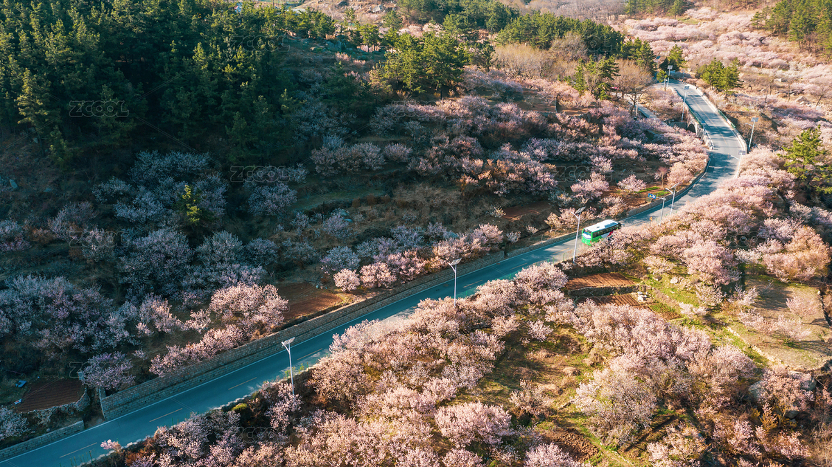 崂山,北九水,樱桃花,樱花,花,植物,自然,春天,航拍视角,路