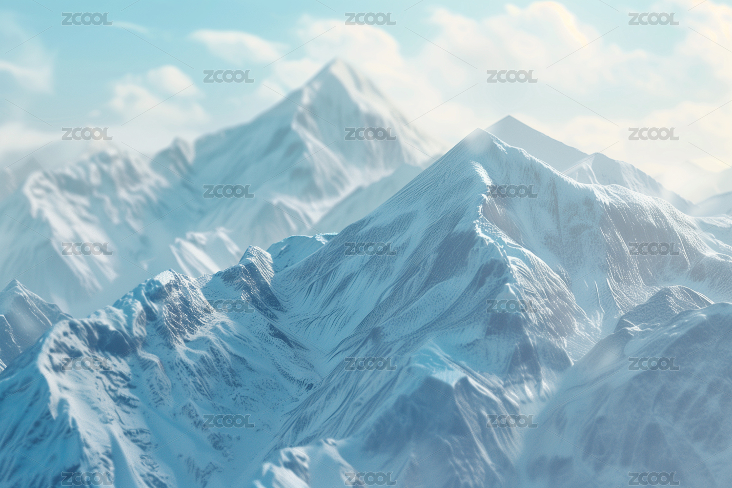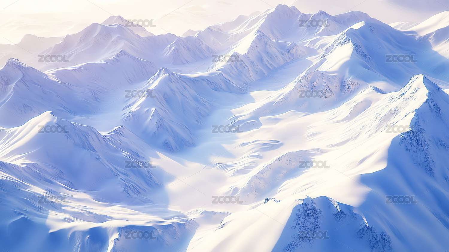 浅蓝背景下白色雪浪起伏呈现清新治愈的冬日