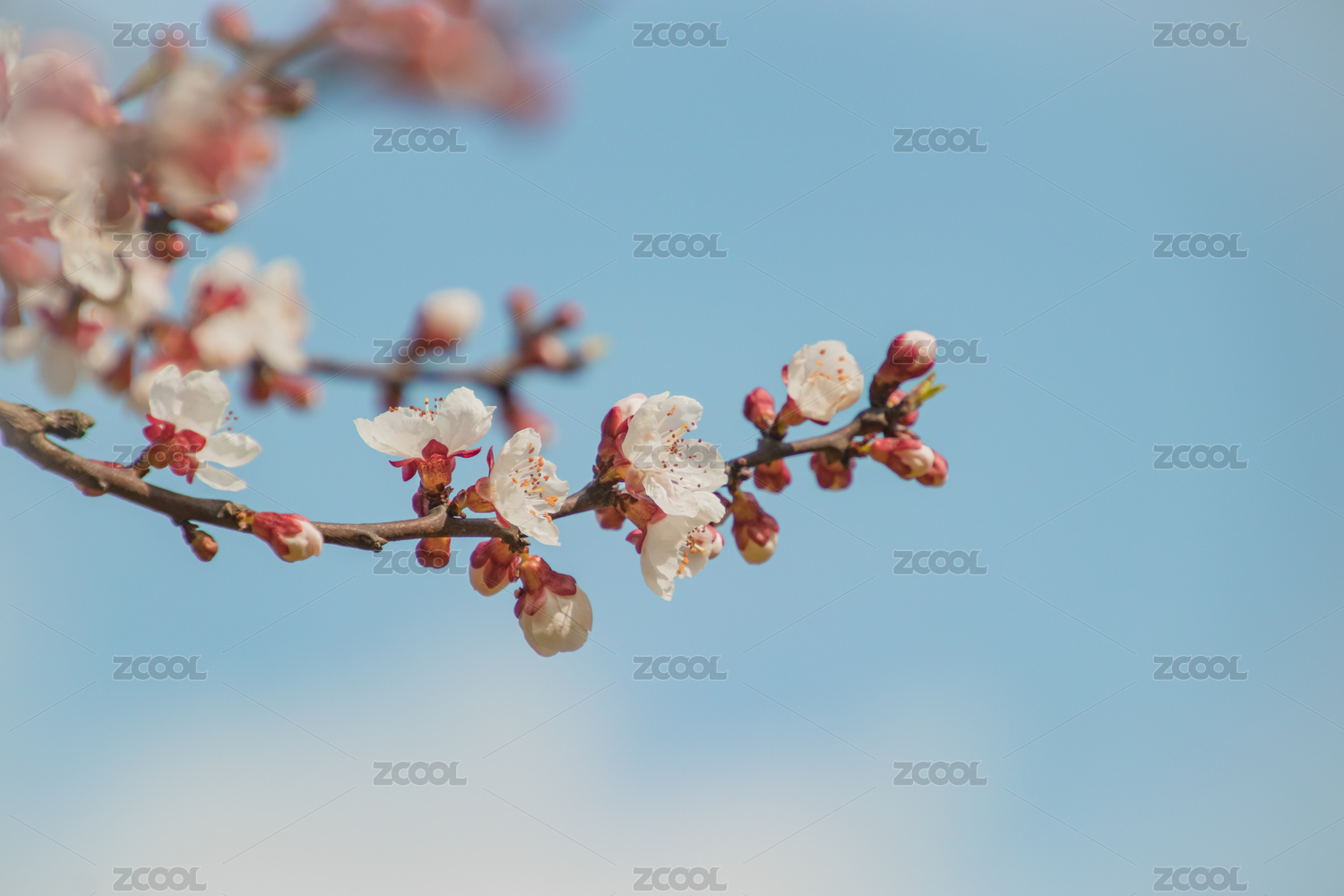 天空背景杏花枝头