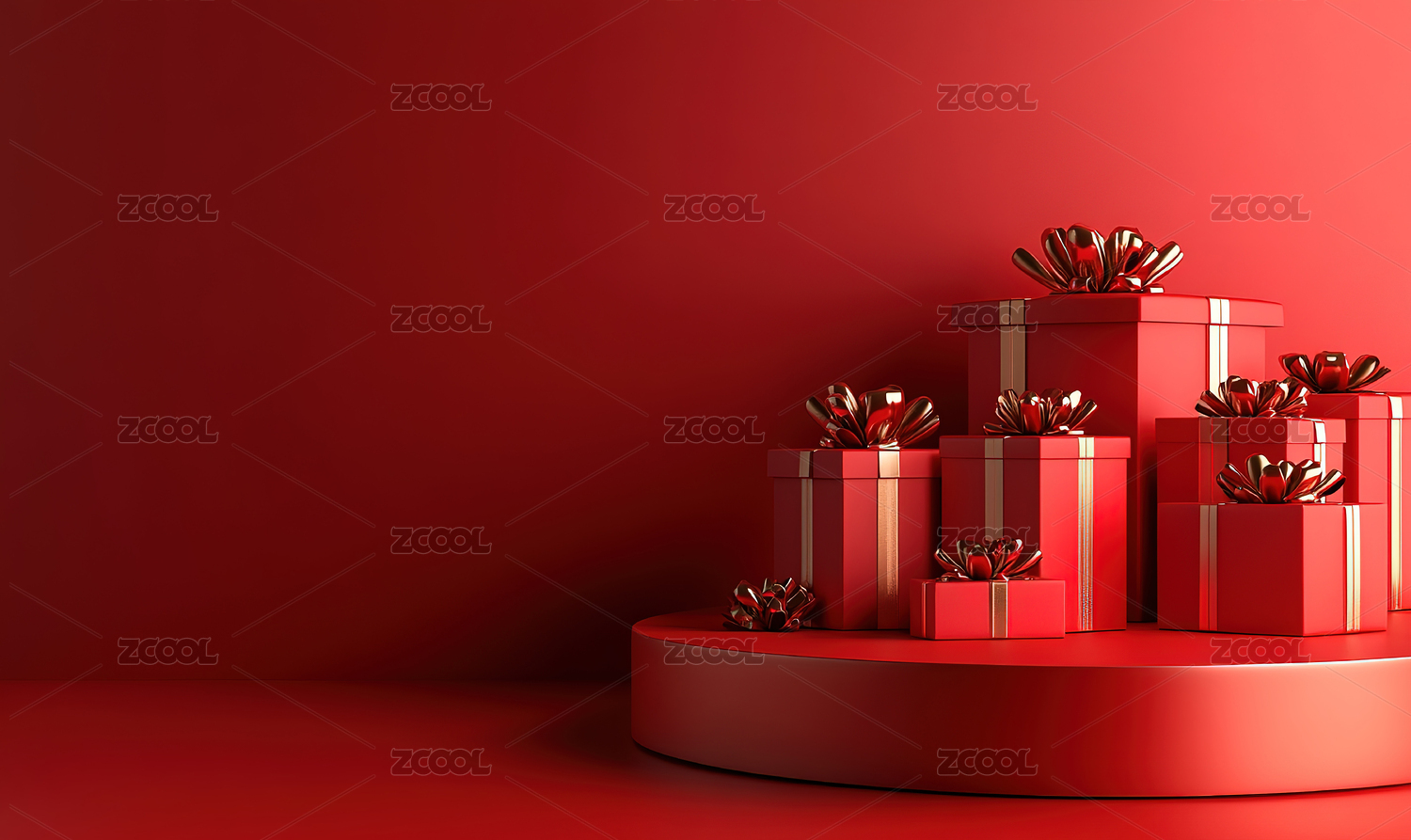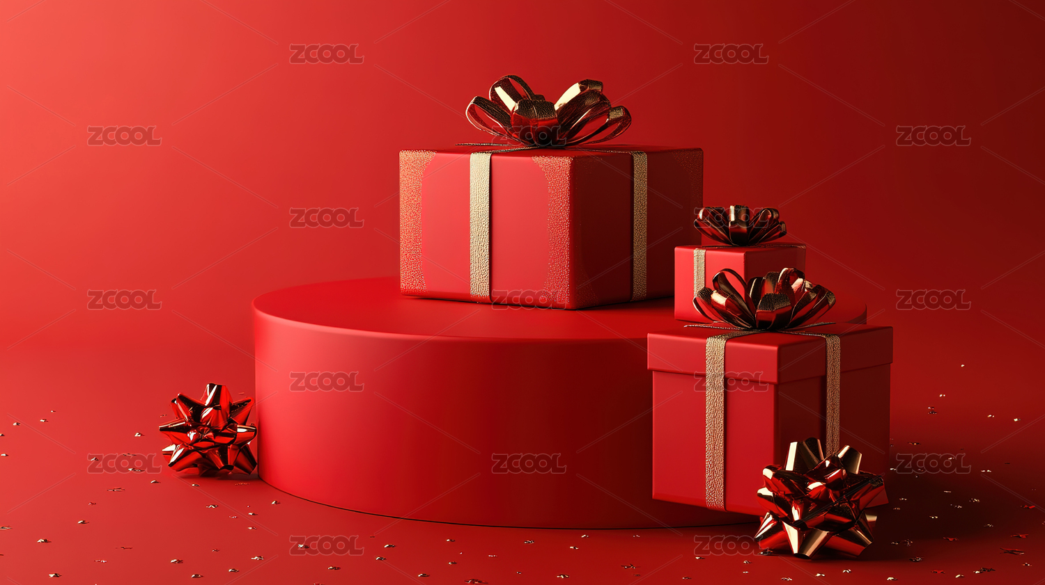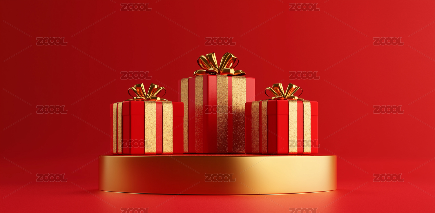 3D红色礼物盒电商大促展台背景