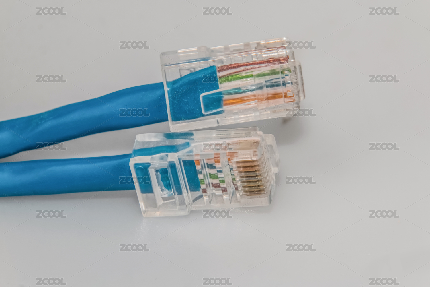 橙白网线插头浅蓝色