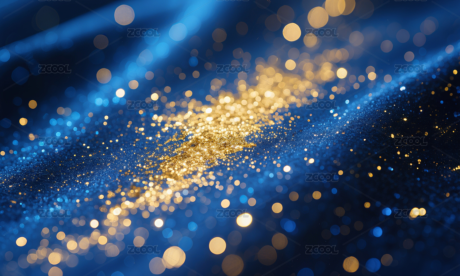 金色碎钻洒在深蓝色波浪纹背景上