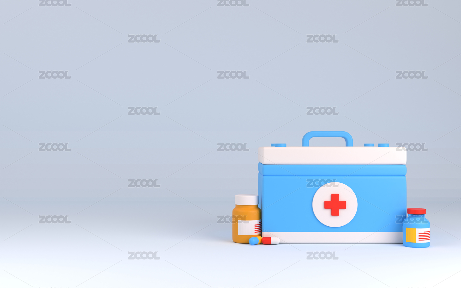3D,医疗,背景,红色,蓝色,急救箱,医疗箱
