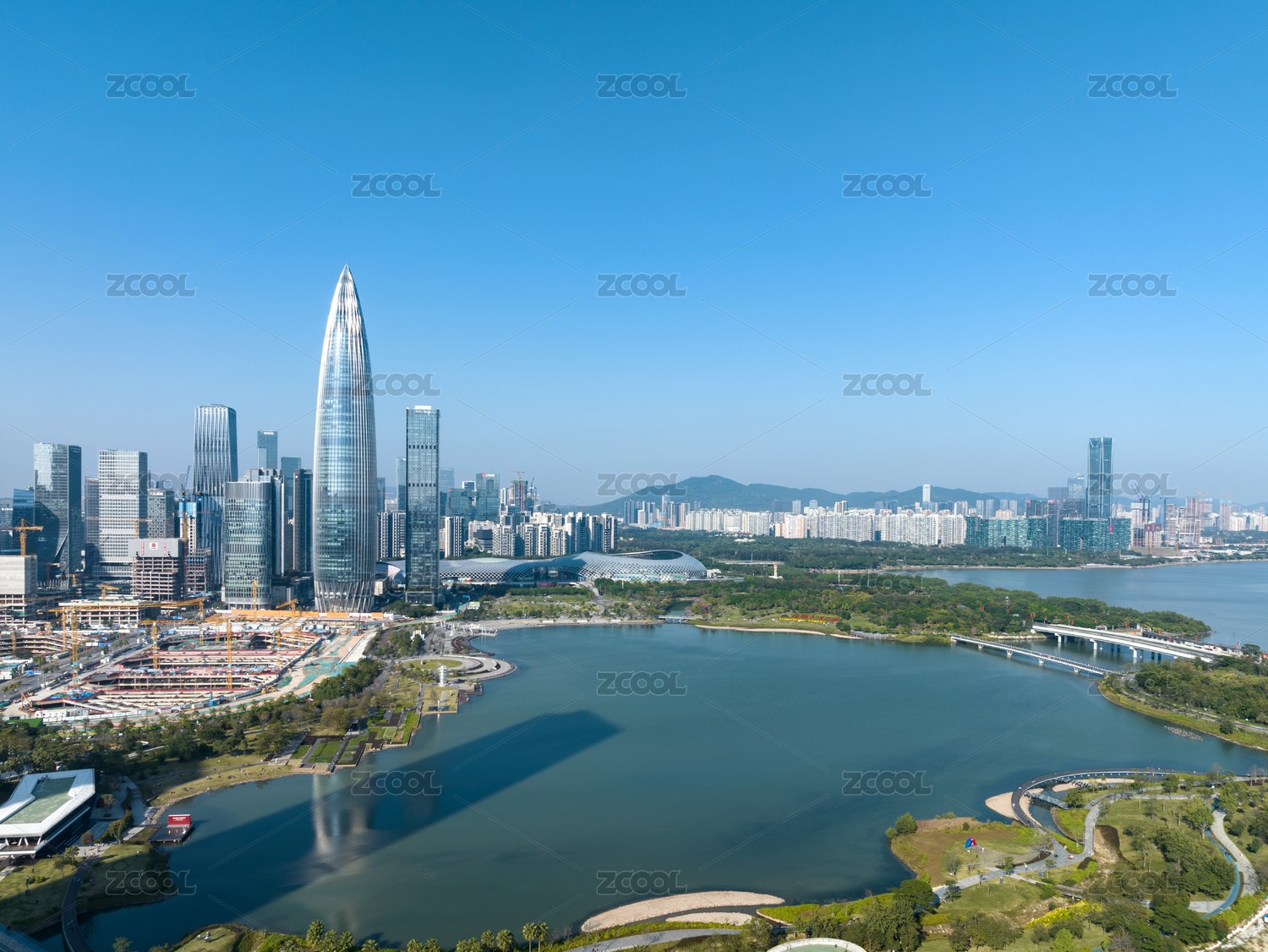 深圳南山春笋华润大厦人才公园航拍