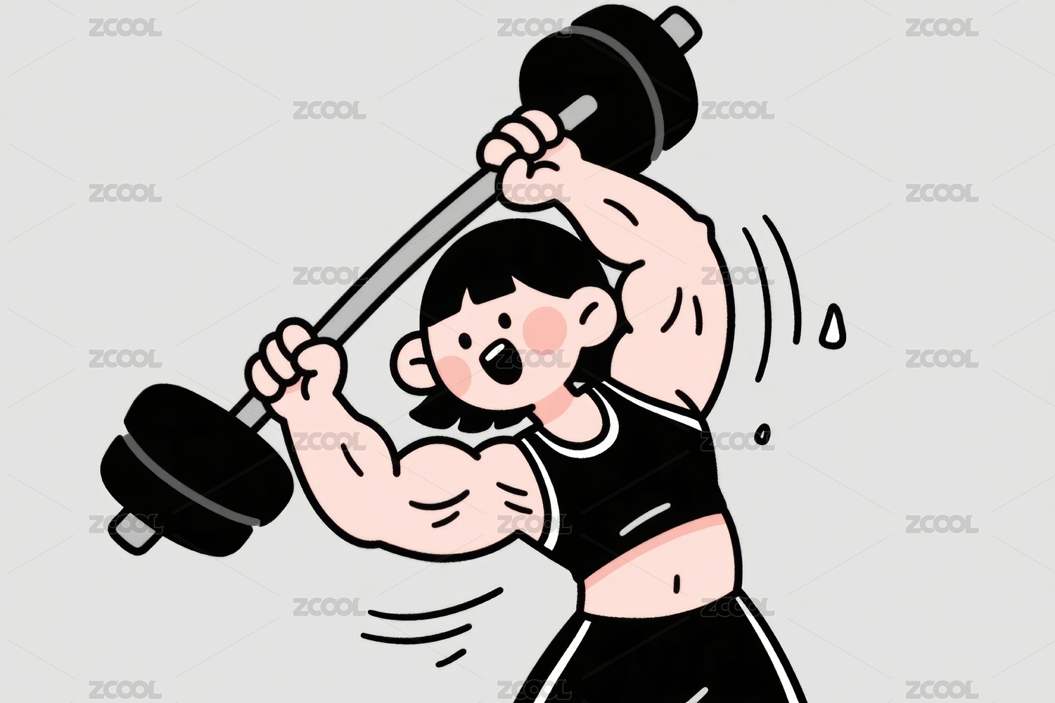 卡通人物举起杠铃
