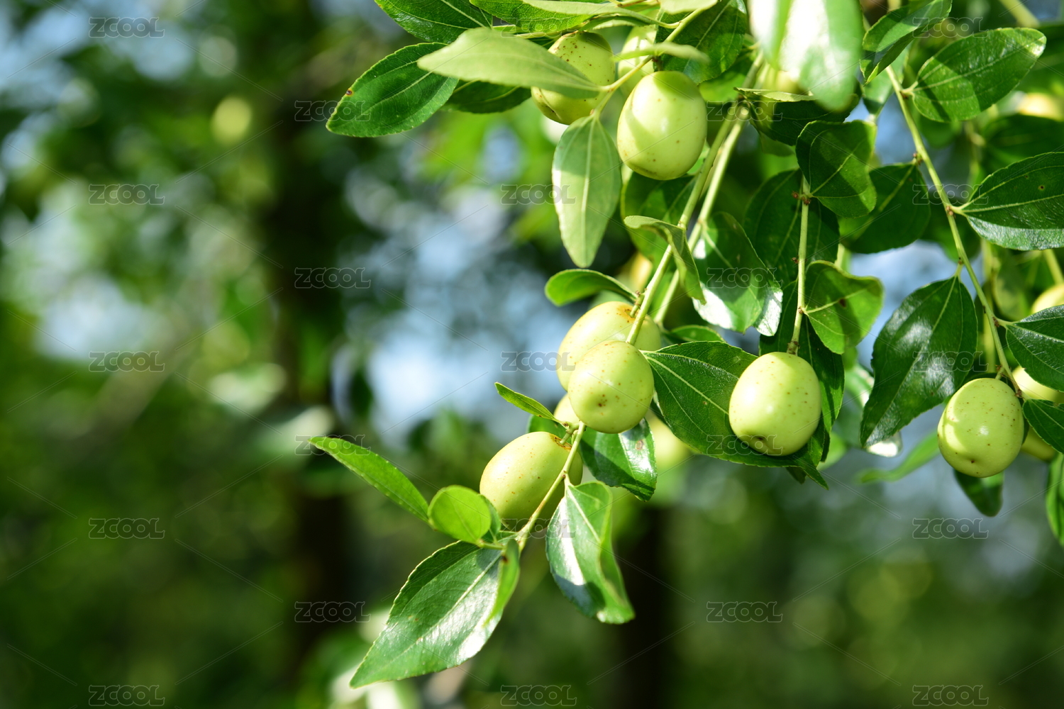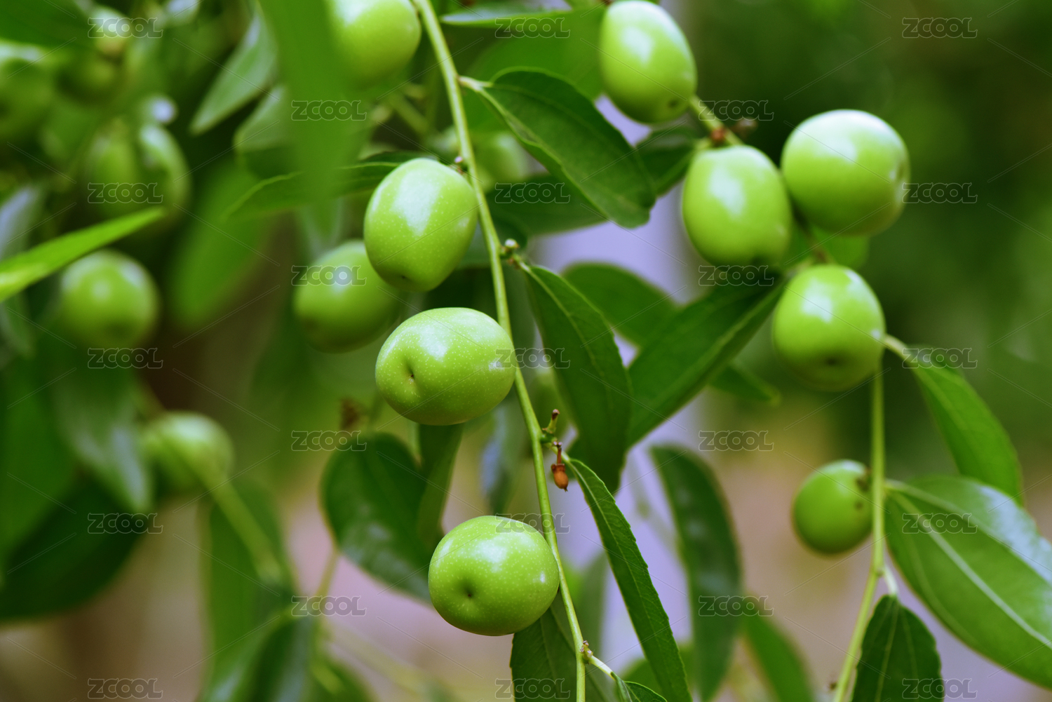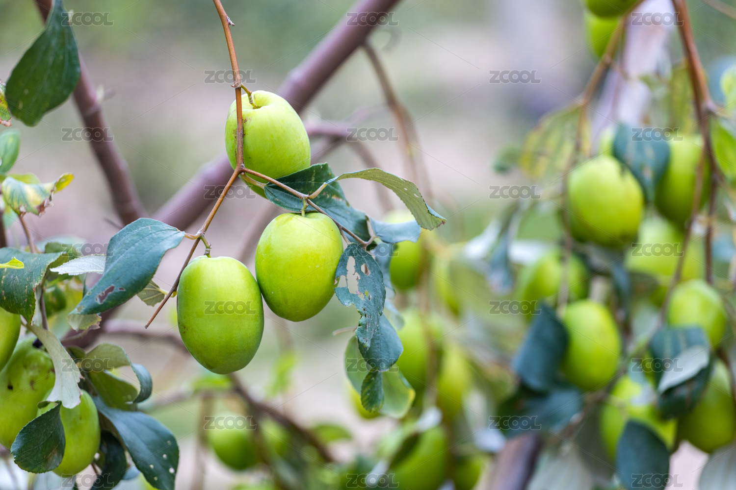 挂在枝头上新鲜的青枣