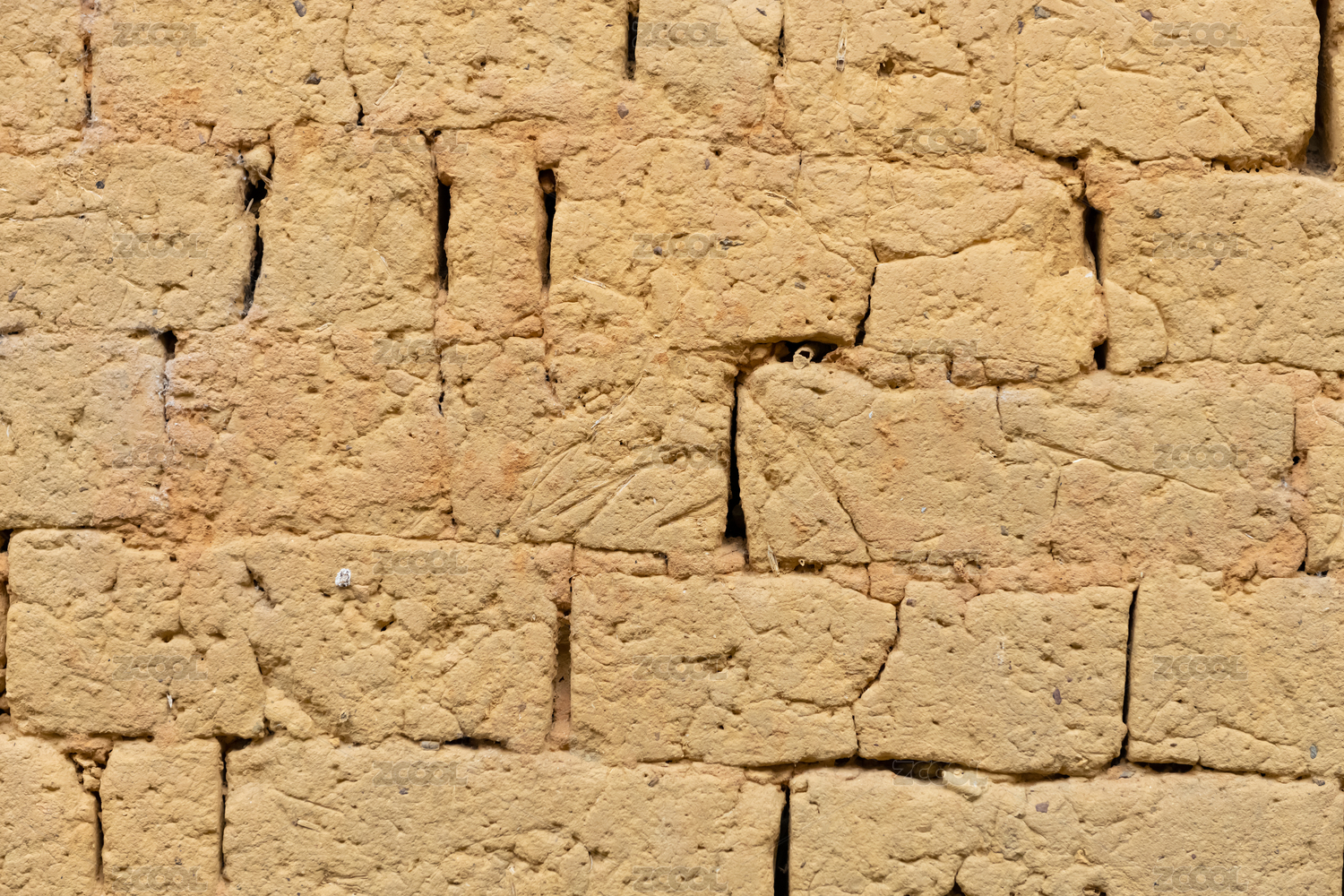 中国山西省武乡县乡村民宅泥巴砖墙建筑