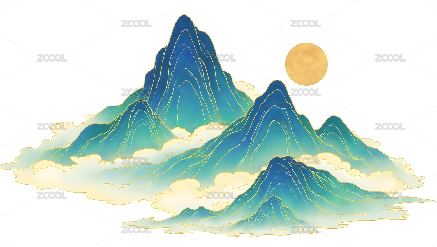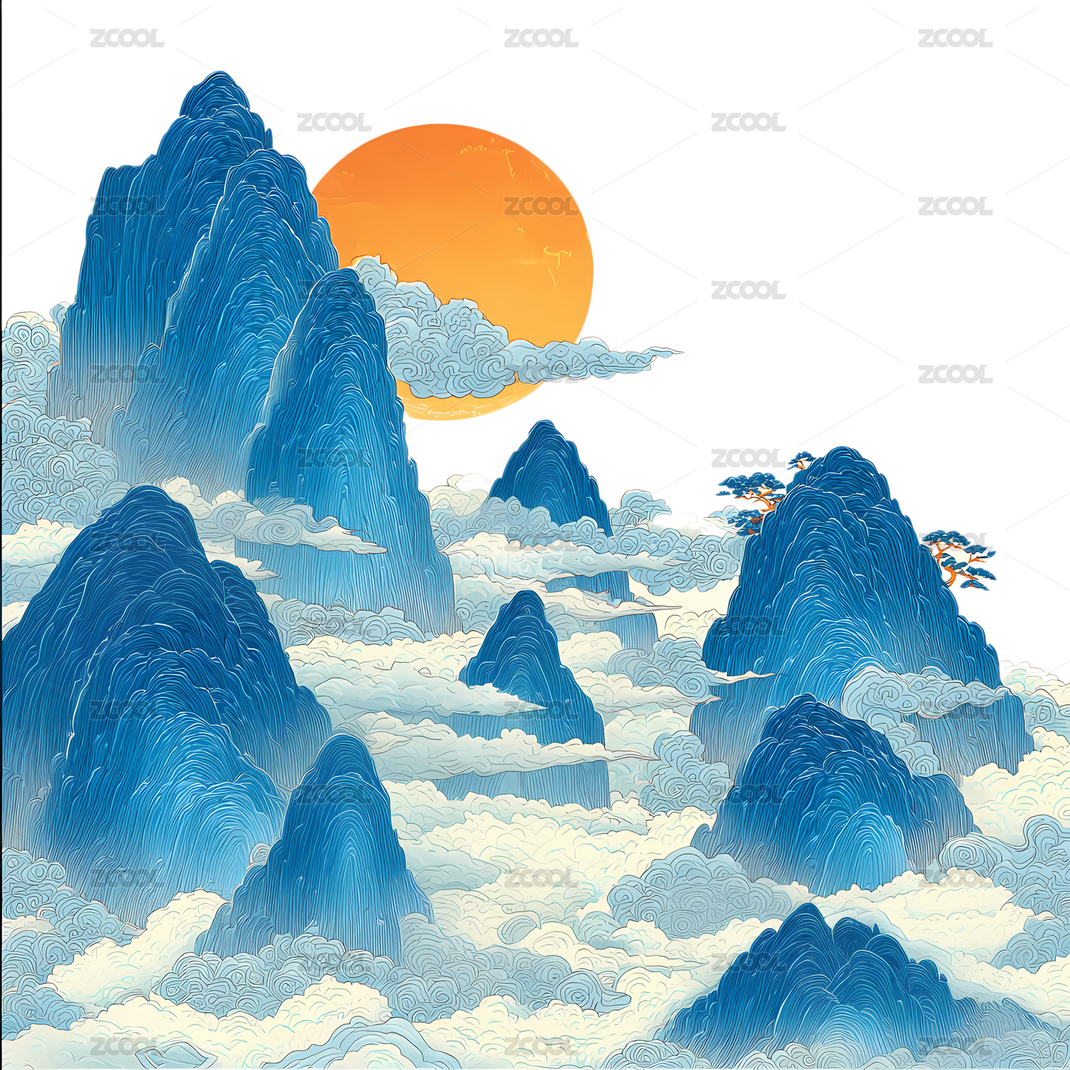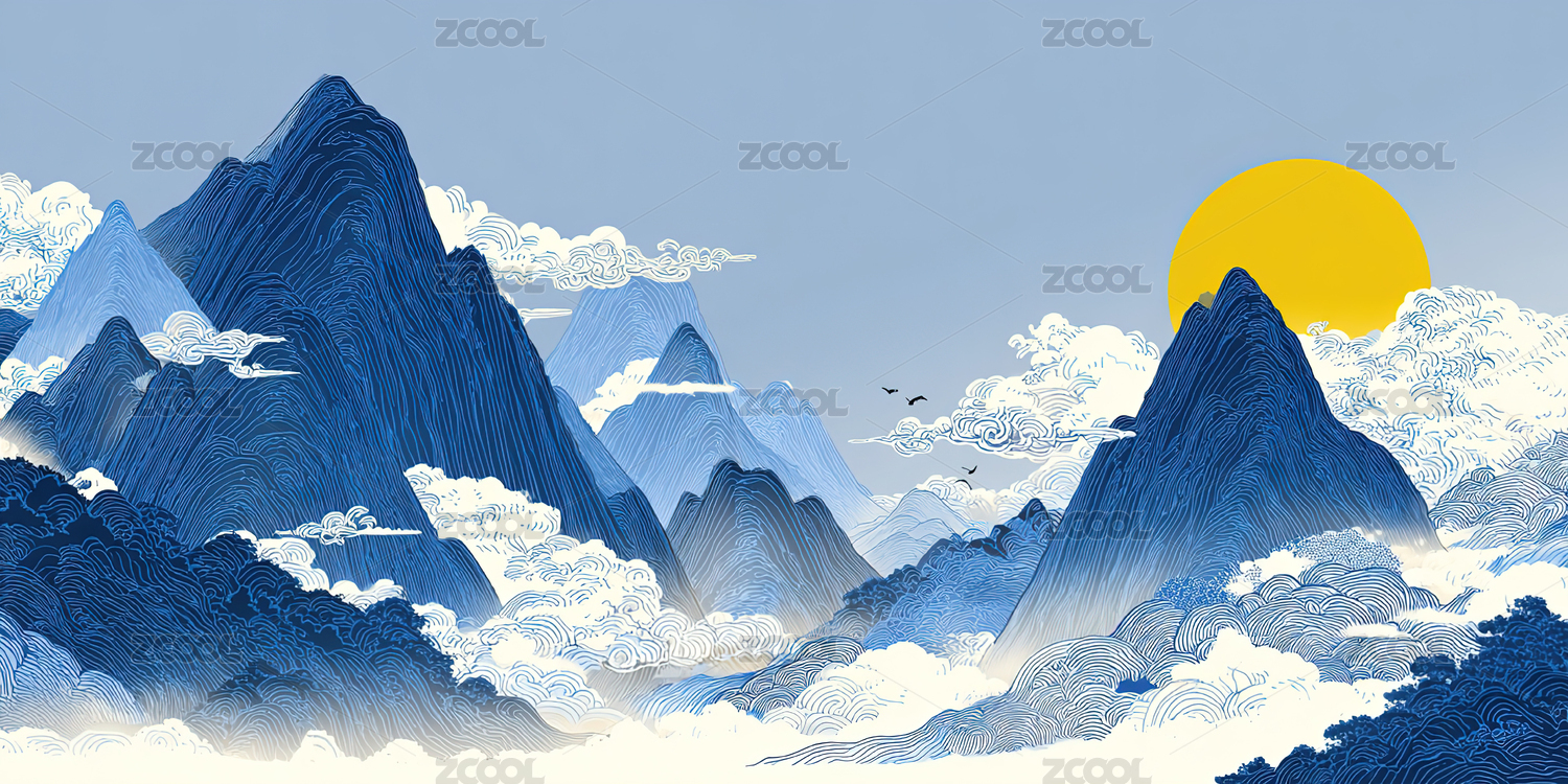 山水画风国潮山峦